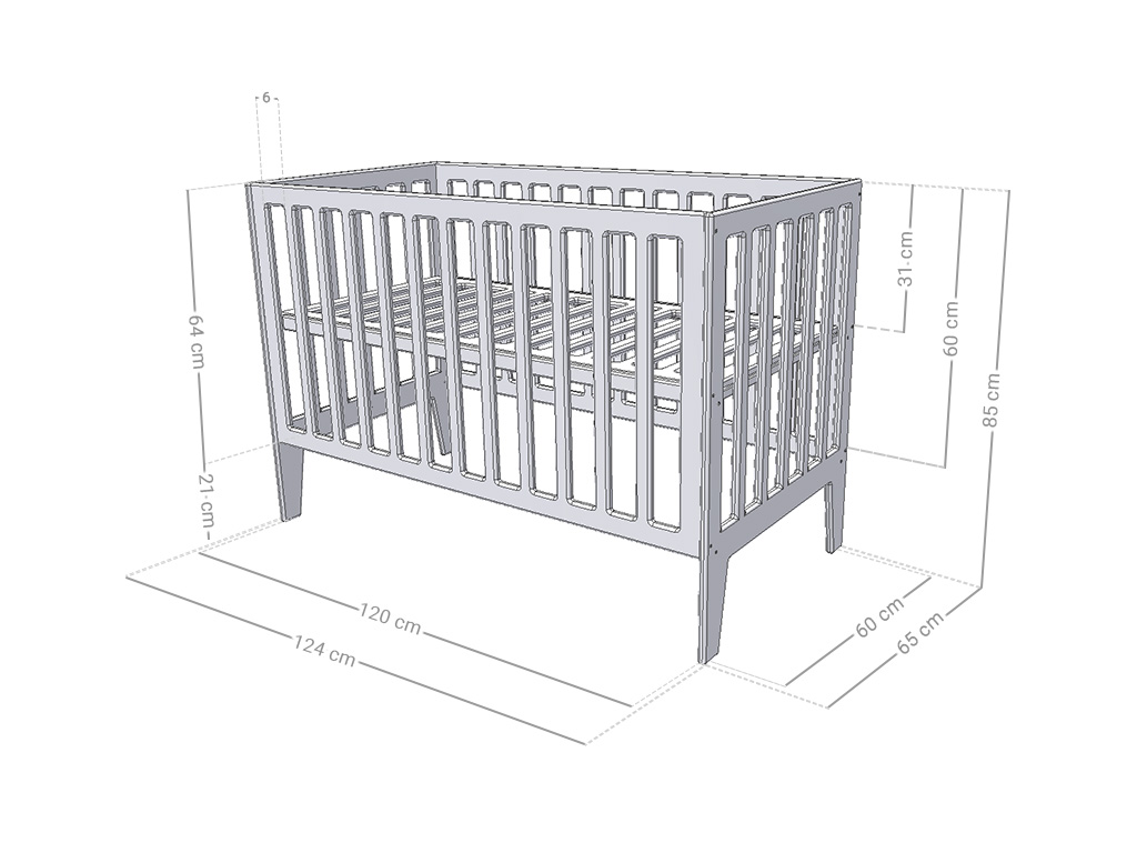 Was ist das Wichtigste außer der Liebe der Eltern, was jedes Kind braucht? Richtig, ein perfekter Ort für einen guten Schlaf. Diesen bekommt Dein Baby im 60×120 cm Babybett KIPPY. Das Babybett wird von allen Seiten gut belüftet. Du kannst es auf zwei verschiedene Liegehöhen einstellen. Die obere Position eignet sich für Neugeborene, die untere für Babys, die bereits wissen, wie man sich ohne Hilfe hinsetzt.