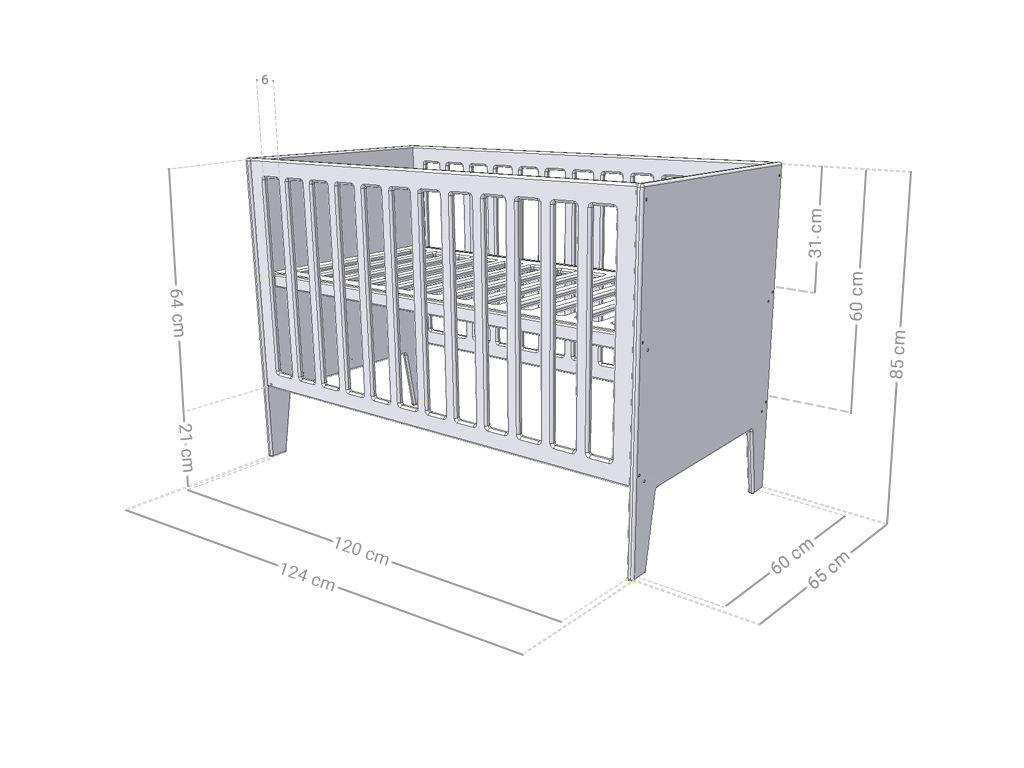 Was ist das Wichtigste außer der Liebe der Eltern, was jedes Kind braucht? Richtig, ein perfekter Ort für einen guten Schlaf. Diesen bekommt Dein Baby im 60×120 cm Babybett SLEEPY. Das Babybett wird von allen Seiten gut belüftet. Du kannst es auf zwei verschiedene Liegehöhen einstellen. Die obere Position eignet sich für Neugeborene, die untere für Babys, die bereits wissen, wie man sich ohne Hilfe hinsetzt.