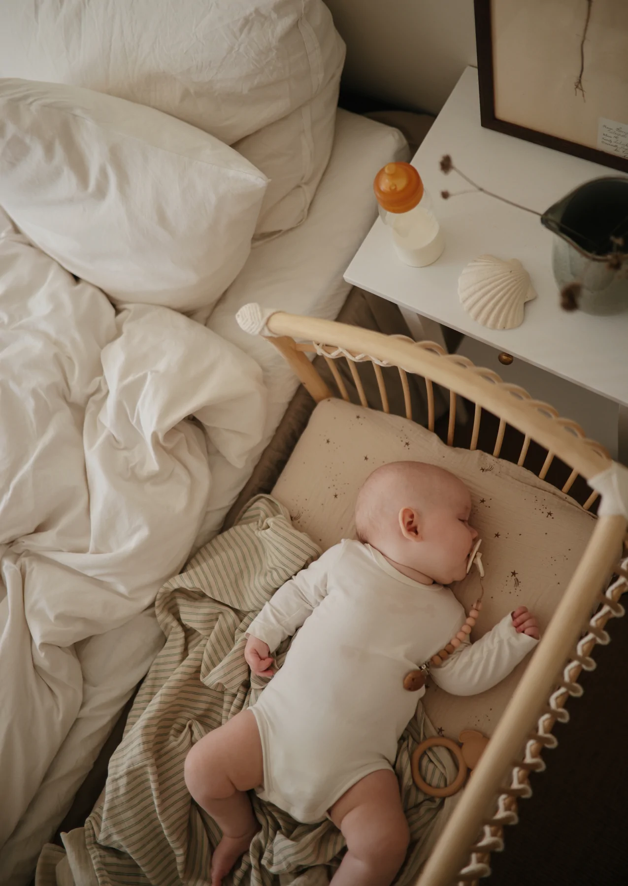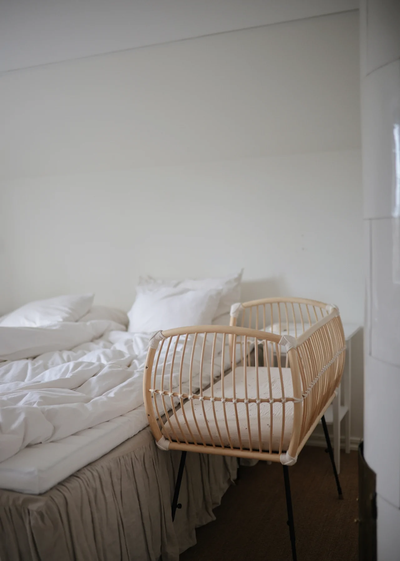 Mit dem Beistellbett MARTHA VEGAN ist dein Baby ganz nah bei dir und dennoch in seinem eigenen Bettchen. Durch die schützende und nach aussen gewölbte Wand des Korbes wirkt das Beistellbett wie ein behütendes Nest. Das Beistellbett MARTHA VEGAN hat höhenverstellbare Füße aus Metall. Damit kann das Beistellbett an unterschiedliche Betthöhen angepasst werden. Das Bettchen zeichnet sich durch ein leichtes, transparentes Design aus. Dennoch ist es äußerst stabil. Die schmalen Riemen aus Baumwoll-Seilen verbinden die einzelnen Stäbe des Rattan Korbes und verleihen dem Beistellbett seine enorme Festigkeit. Für eine sichere Bodenauflage sorgen kleine Fußenden aus Eichenholz. Bei Bedarf kann die offene Seite durch das mitgelieferte extra Element einfach mit 4 Schrauben verschlossen werden, sodass das Bett auch für sich alleine stehen kann.