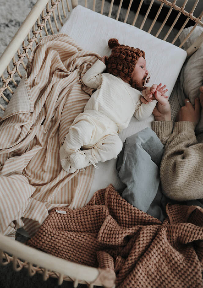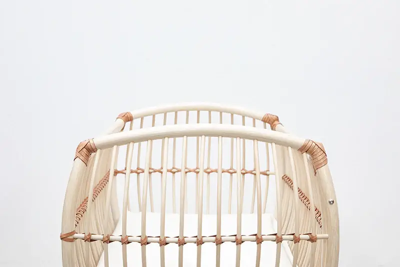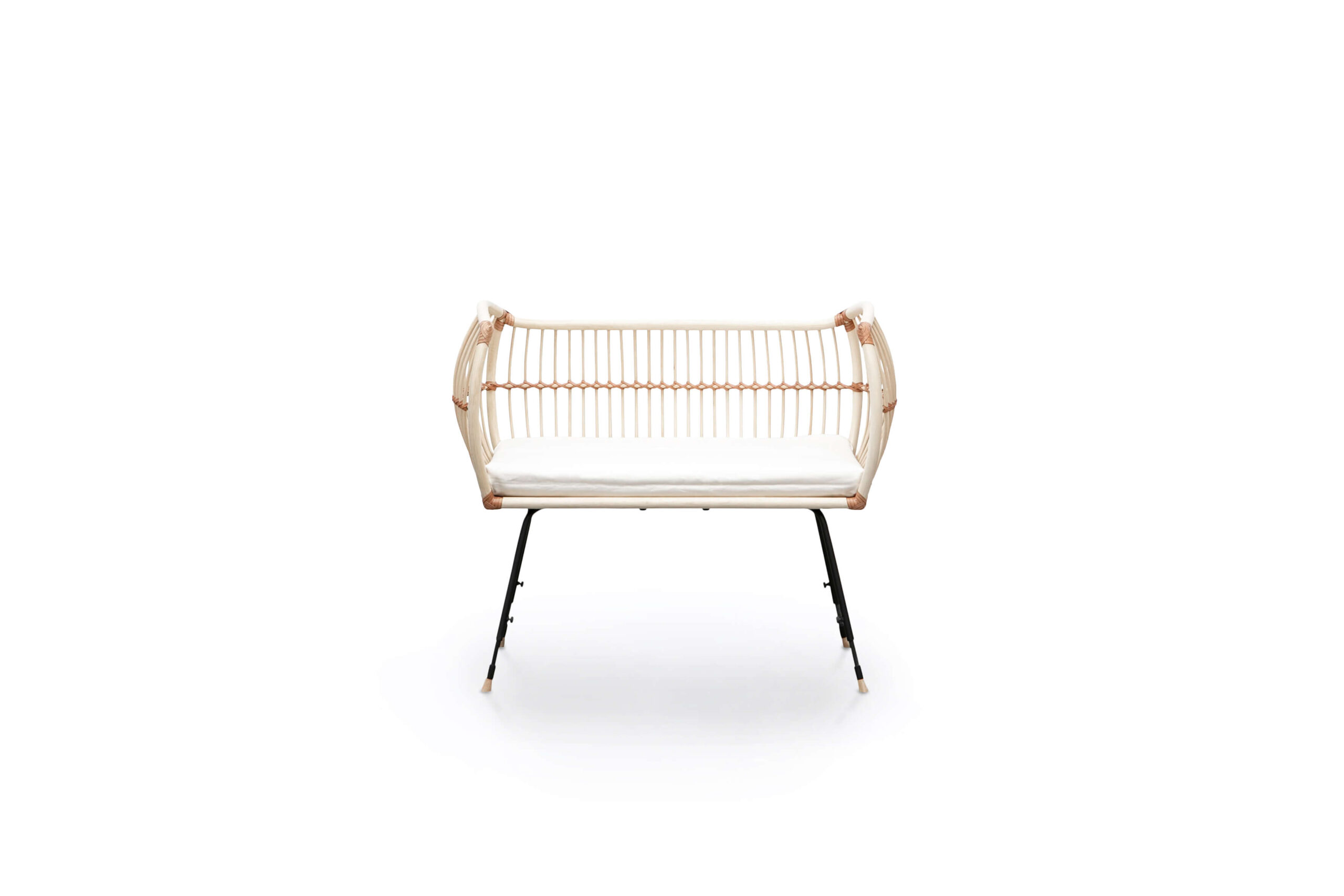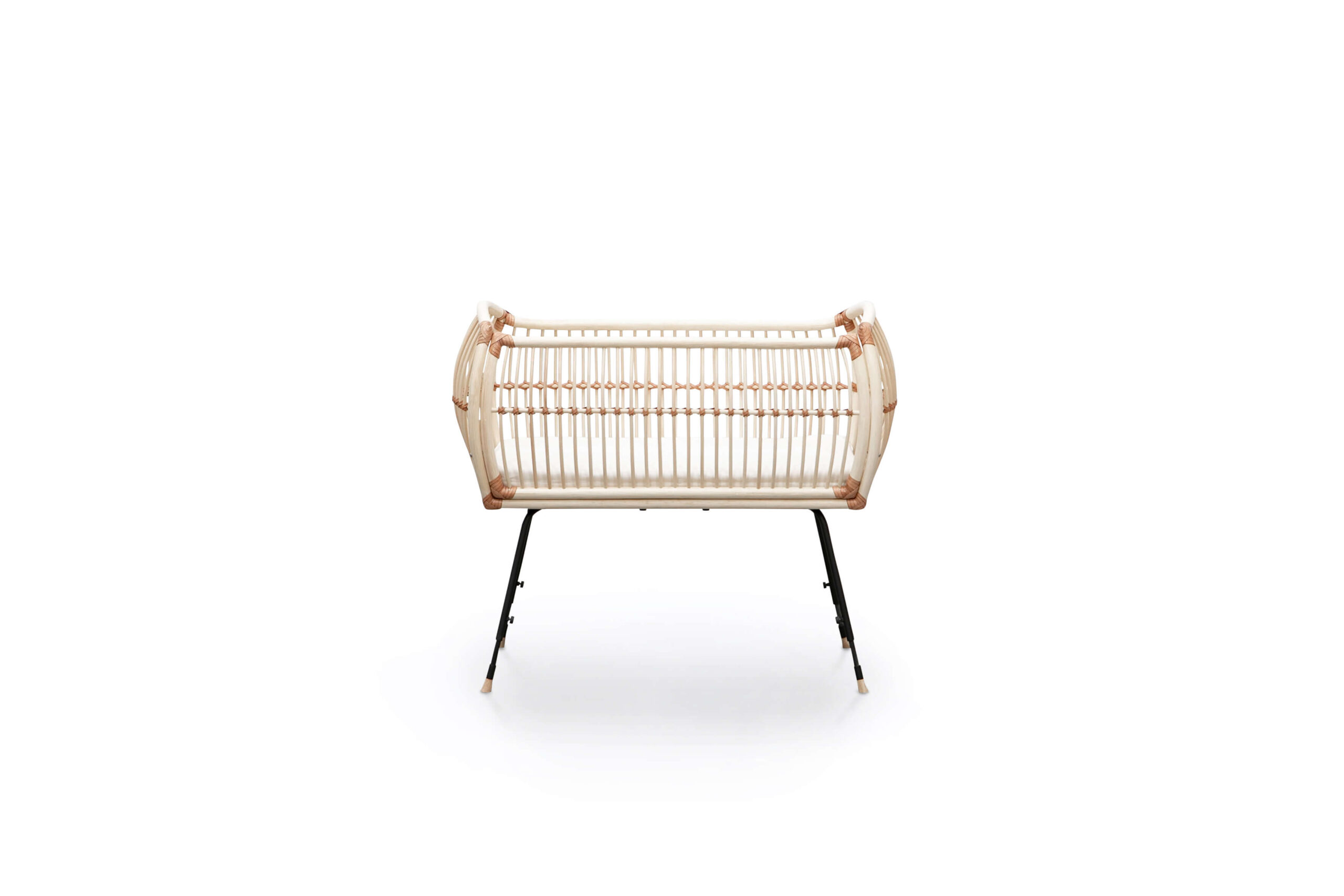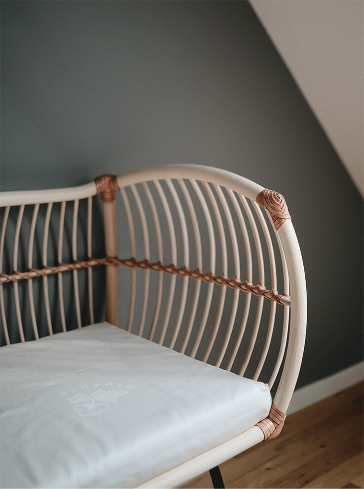 Mit dem Beistellbett MARTHA ist dein Baby ganz nah bei dir und dennoch in seinem eigenen Bettchen. Durch die schützende und nach aussen gewölbte Wand des Korbes wirkt das Beistellbett wie ein behütendes Nest. Das Beistellbett MARTHA hat höhenverstellbare Füße aus Metall. Damit kann das Beistellbett an unterschiedliche Betthöhen angepasst werden. Das Bettchen zeichnet sich durch ein leichtes, transparentes Design aus. Dennoch ist es äußerst stabil. Die schmalen Riemen aus pflanzlich gegerbtem Naturleder verbinden die einzelnen Stäbe des Rattan Korbes und verleihen dem Beistellbett seine enorme Festigkeit. Für eine sichere Bodenauflage sorgen kleine Fußenden aus Eichenholz. Bei Bedarf kann die offene Seite durch das mitgelieferte extra Element einfach mit 4 Schrauben verschlossen werden, sodass das Bett auch für sich alleine stehen kann.