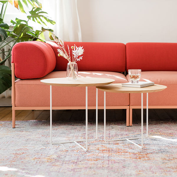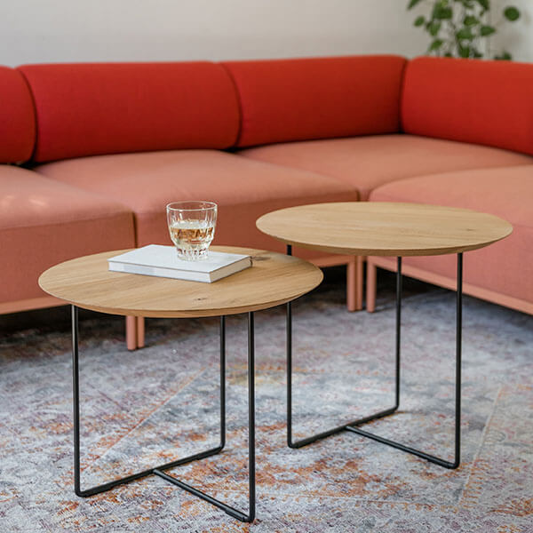 Der Beistelltisch EICHE 01 hat einen Durchmesser von 50 cm und ist in zwei Höhen verfügbar. Größe M ist 45 cm hoch, die Größe S ist mit 40 cm etwas niedriger. So lassen sich die beiden Tischgrößen ideal miteinander kombinieren.