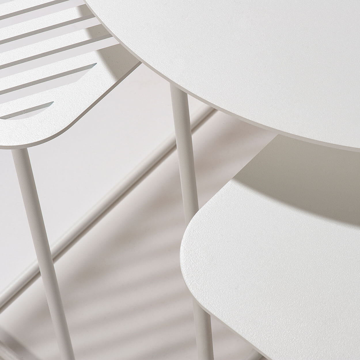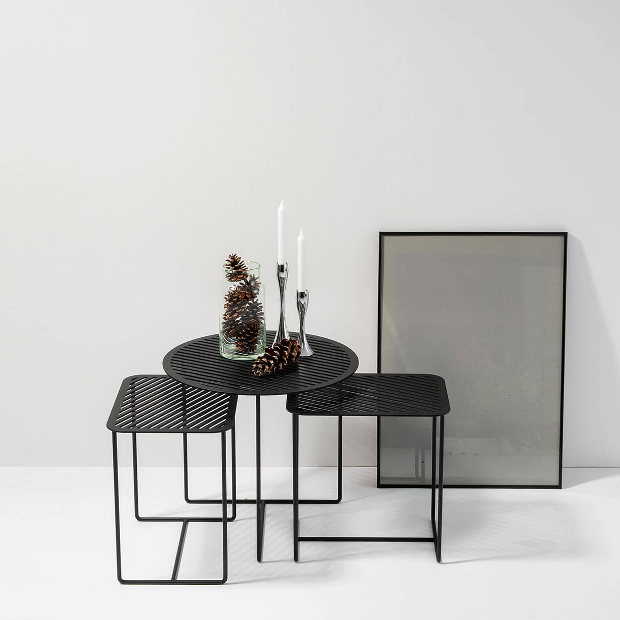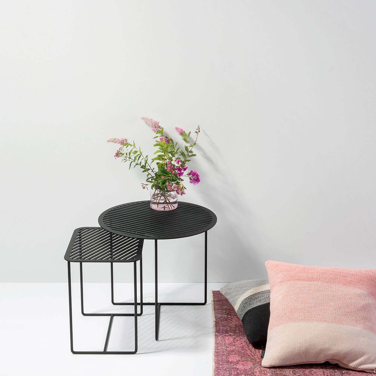 Aufgrund der niedrigeren Höhe kann der Beistelltisch GRID 02 ideal unter die runden Beistelltische der Kollektion ‚SOLID & GRID‘ geschoben werden – attraktive Tisch-Ensemble entstehen.