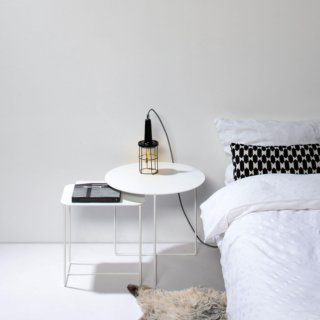 Der Beistelltisch ist in Schwarz und Weiß erhältlich.