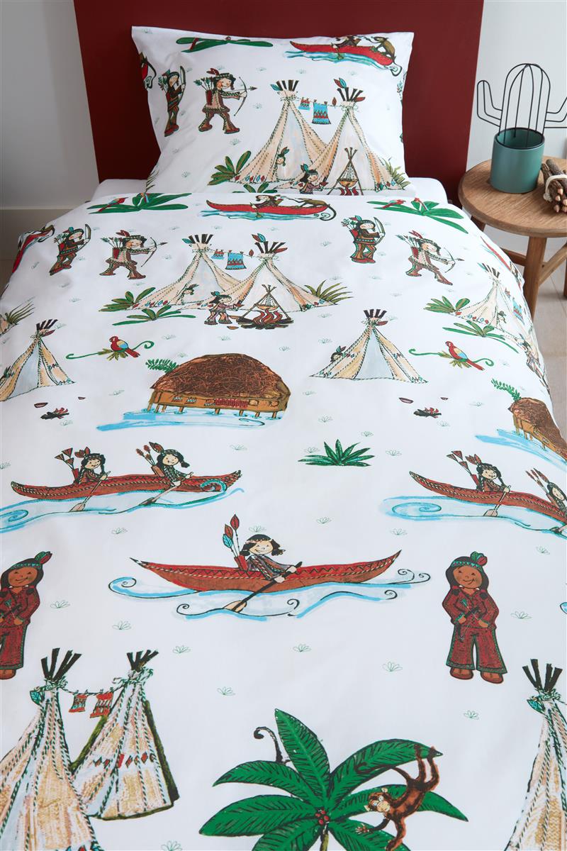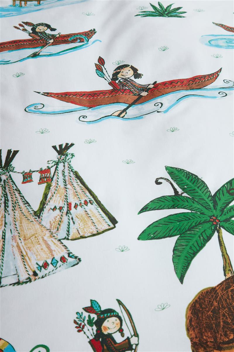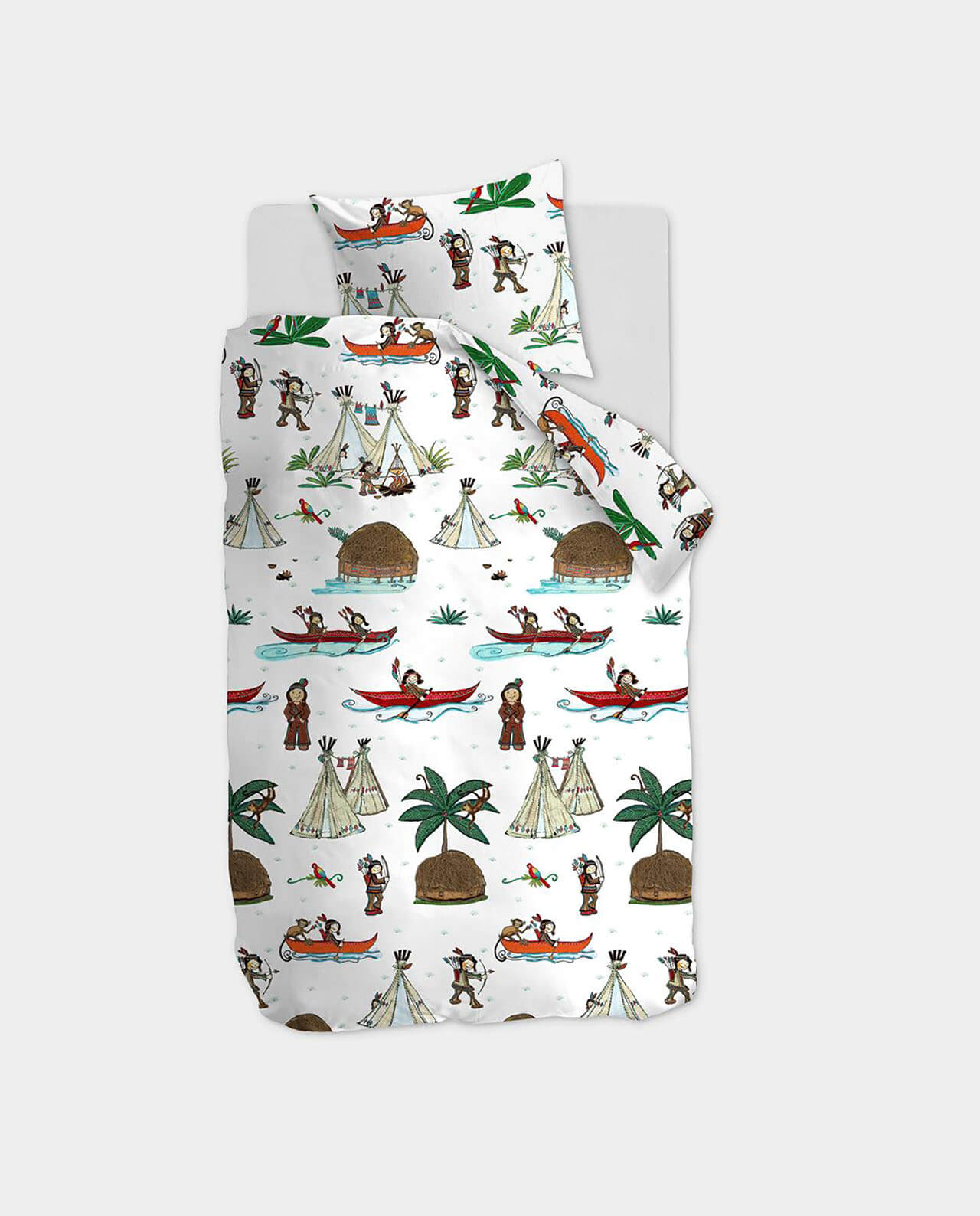 Indianer, Wigwams, Kajaks, Äffchen und exotische Vögel auf der Bettwäsche WIGWAM entführen in die aufregende Welt der Indianer. Die kleinen Figuren auf der süßen Kinder Bettwäsche sind von Hand gezeichnet. Sie kommen auf dem weißen Untergrund sehr schön zur Geltung. Die Bettwäsche besteht aus reiner Baumwolle in höchster Qualität. Der Bettbezug hat zudem einen praktischen Reißverschluss zum leichten Wechseln.