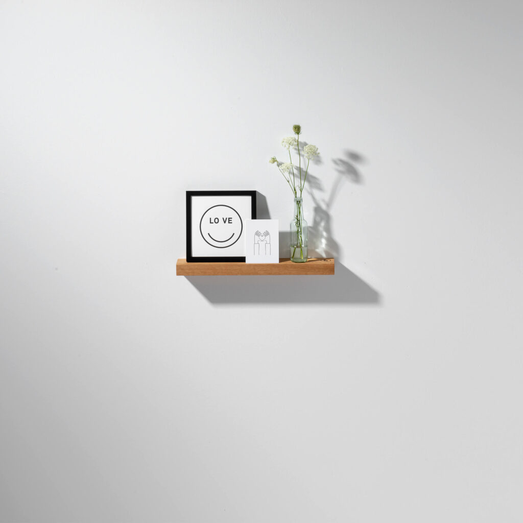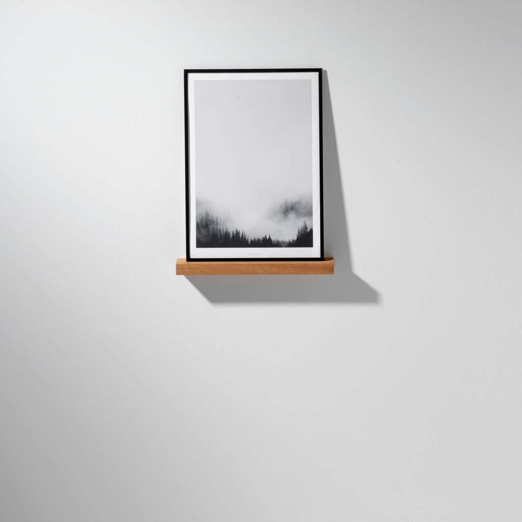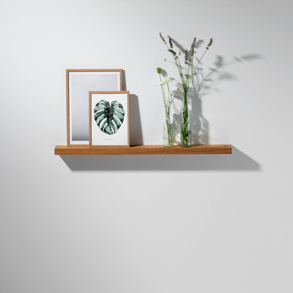 Die Bilderleiste OAK II ist in drei Größen erhältlich. Sie wird einfach mit zwei Schrauben an der Wand befestigt.