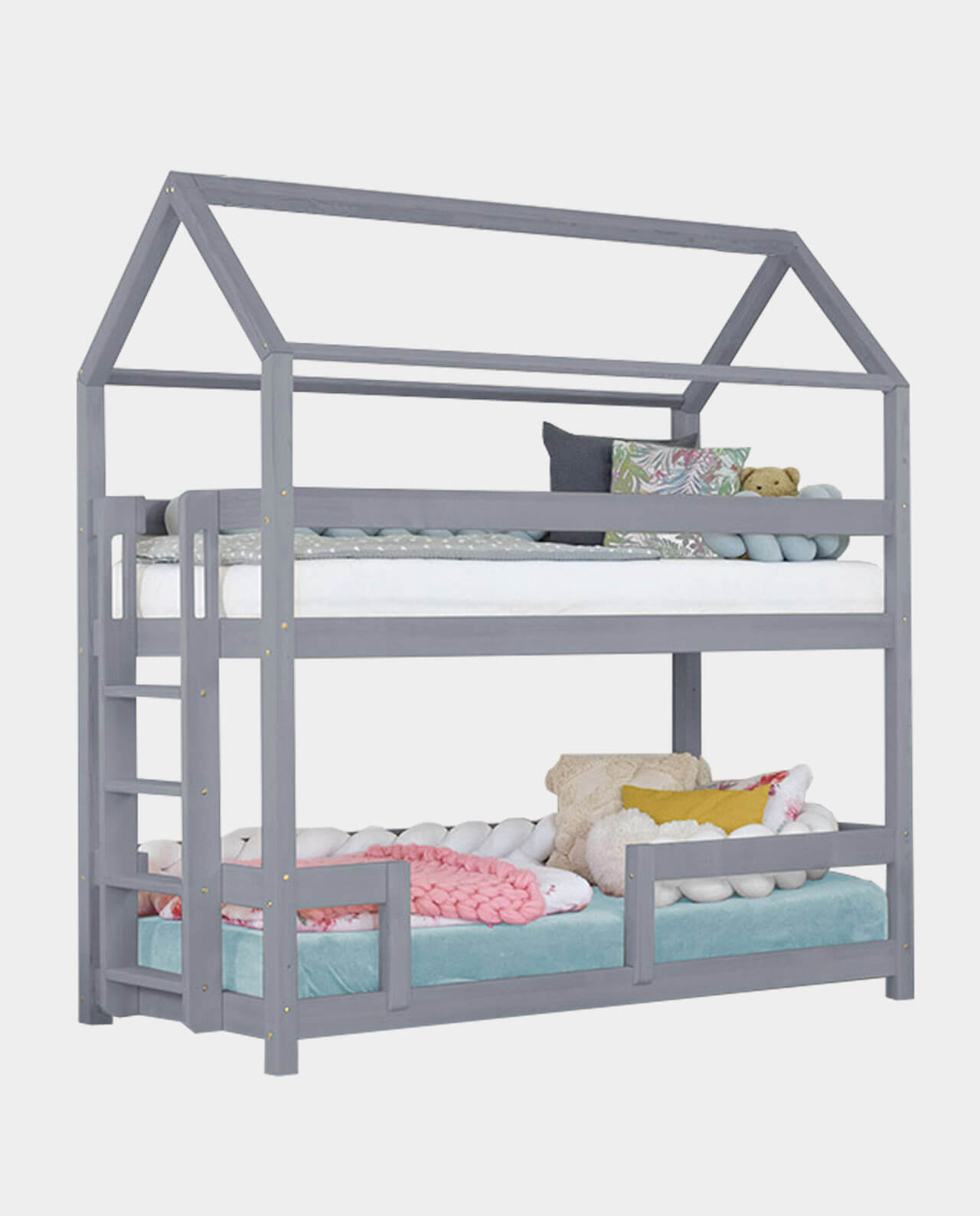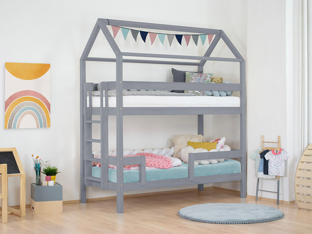 Dieses wundervolle Etagenbett bietet deinen Kindern alles was es braucht, um sich nachts richtig wohl zu fühlen. Das Doppelstockbett ist handgefertigt aus 6 cm dickem Vierkantholz. Es ist mit ökologischen Farben lackiert, die die Natur schützen und auch für Allergiker geeignet sind. Das Etagenbett kann pro Etage bis zu 150 kg tragen, so dass auch ein Elternteil zum Vorlesen der Gute-Nacht-Geschichte problemlos mit im Bett liegen kann. An der Seite des Bettes befindet sich einer Leiter, über die man bequem ins Bett steigen kann. Die Lieferung beinhaltet den Bettrahmen sowie zwei Lattenroste. Matratzen sind nicht inklusive. Wir empfehlen Matratzen mit einer Höhe von mind. 18cm. Die Leiter kann sowohl links als auch rechts vom Bett angebracht werden.