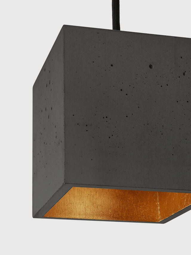 Die Betonleuchte B1 überzeugt mit ihrem minimalistischen Design und klaren Formen. Die Kombination aus hochwertigem, grauen Beton und der stilvollen Veredelung der Innenseite wirkt sehr luxuriös und besticht durch eine hohe Produktqualität. Sie strahlt zudem ein warmes Licht aus. Mit der Größe von 14cm x 14cm x 14cm kann sie sowohl einzeln als auch in Reihe über einem Esstisch, einer Bar oder frei im Raum in Szene gesetzt werden.