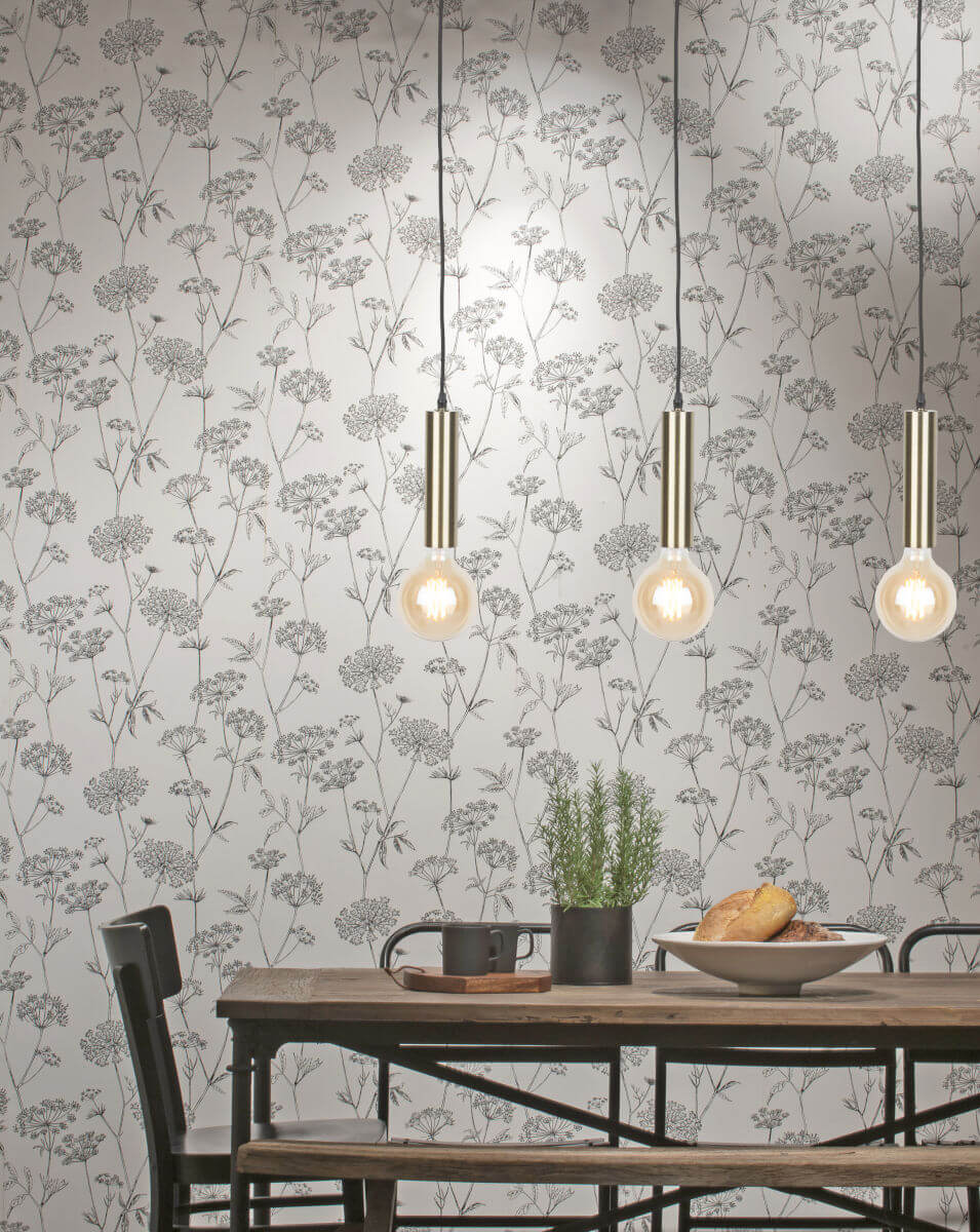 Der schicke Leuchter CANNES wird mit einem 250cm langen schwarzen Textilkabel geliefert.