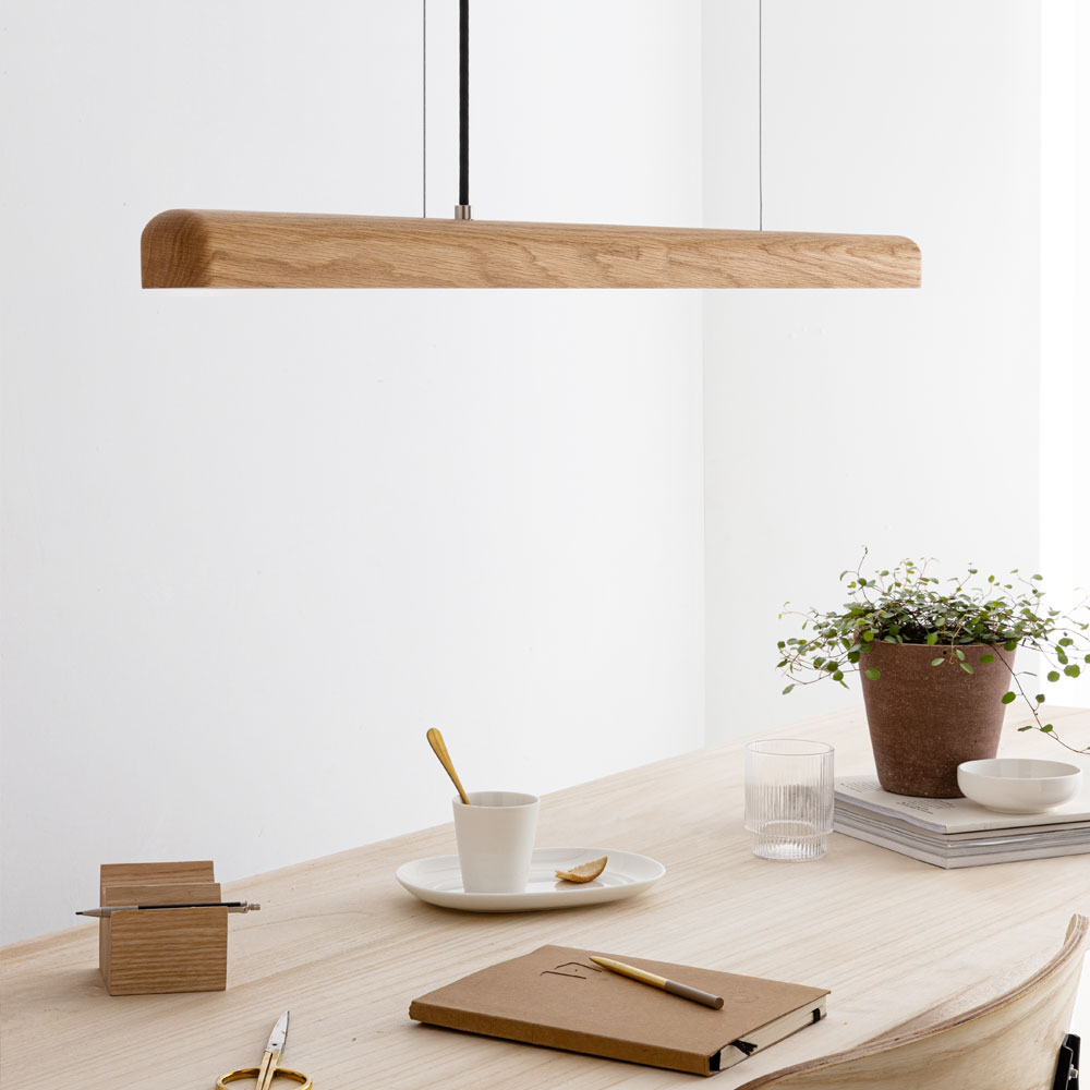 Hängelampe NYX ist eine LED Pendelleuchte aus Holz. Sie verbindet hochwertige LED-Technik und feines Handwerk in einem minimalistischen Design. Trotz der schlanken Form ist die LED-Technik in die Leuchte integriert. Ein „Kasten“ an der Decke entfällt, und lediglich ein schlichter Baldachin versteckt die Anschlüsse an der Decke.