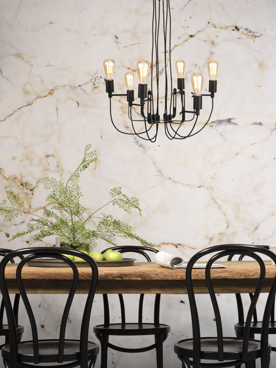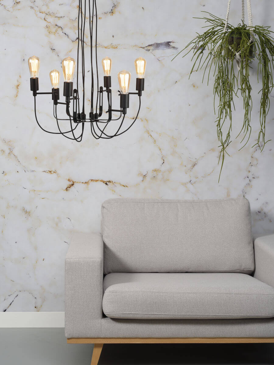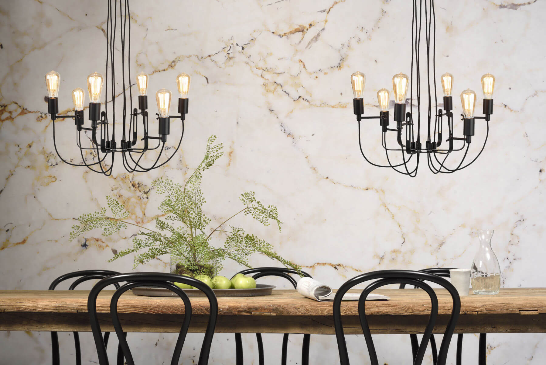 Die angesagte Leuchte SEATTLE wird mit einem 150cm langen schwarzen Kabel geliefert. Das Kabel kann auf Wunschhöhe eingestellt werden.