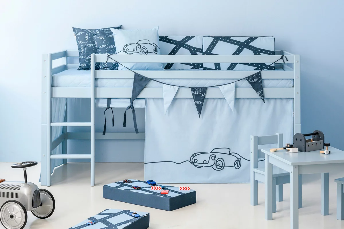 Das ECO DREAM Halbhochbett von Hoppekids in der Größe 90×200 cm wird aus massiver nordischer Kiefer gefertigt und ist mit dem Nordischen Umweltzeichen ausgezeichnet. Das Halbhochbett in 90×200 cm ist wahlweise mit einem Vorhang erhältlich, der ans Bett gehangen wird und somit eine gemütliche kleine Höhle bildet. Mit Lichterketten, schönen Bildern, einer Matratze, Kissen und mehr kann das Bett zusätzlich dekoriert werden. Ein Lattenrost ist bereits in der Lieferung inklusive. Eine Matratze ist nicht inklusive. Dekorationen wie z.B. Kissen sind nicht Teil der Lieferung.