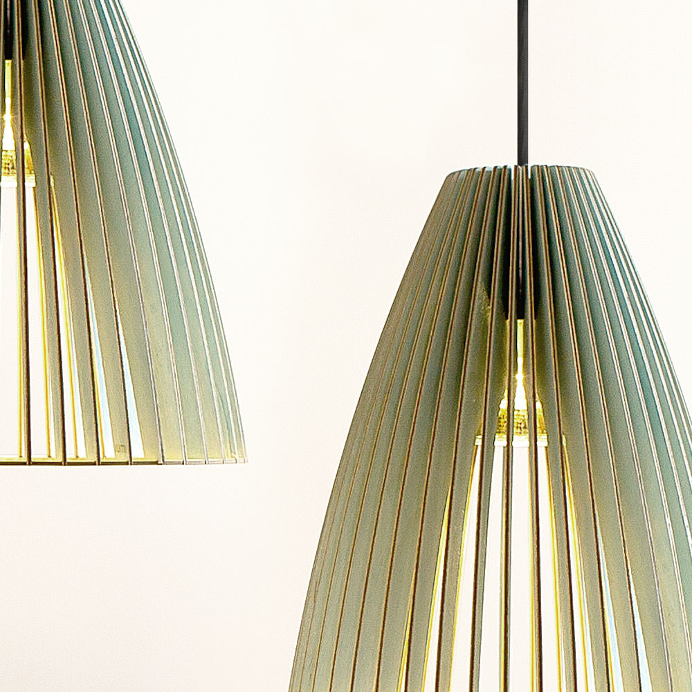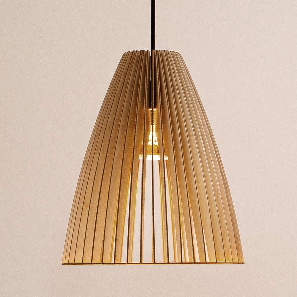 Die Holzleuchte TEIA des Labels IUMI ist ein Blickfang für jeden Raum. Die hochwertige Hängeleuchte wird per Laser aus Birkenholz geschnitten und sorgsam in Handarbeit veredelt. Die Hängelampen vom Iumi sind fein geschliffen und können bei Bedarf mit geeignetem Öl behandelt werden. Die farbigen Lampen sind mit einer Lasur auf natürlicher Basis versehen, welche zugleich wasserabweisend ist. Die Farben sind auch für Kinderspielzeug geeignet – also absolut unbedenklich. Die weiße Holzlampe ist lackiert.