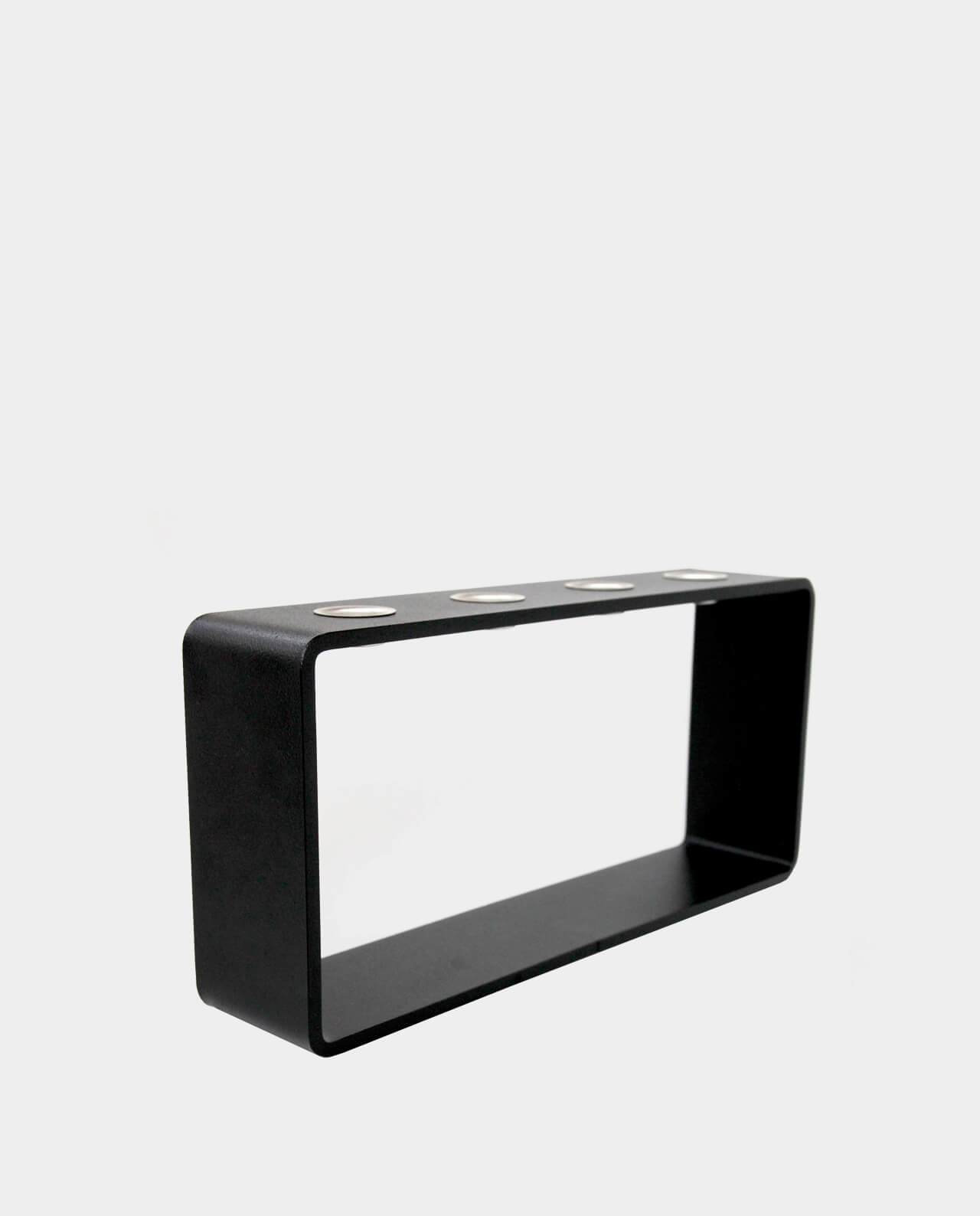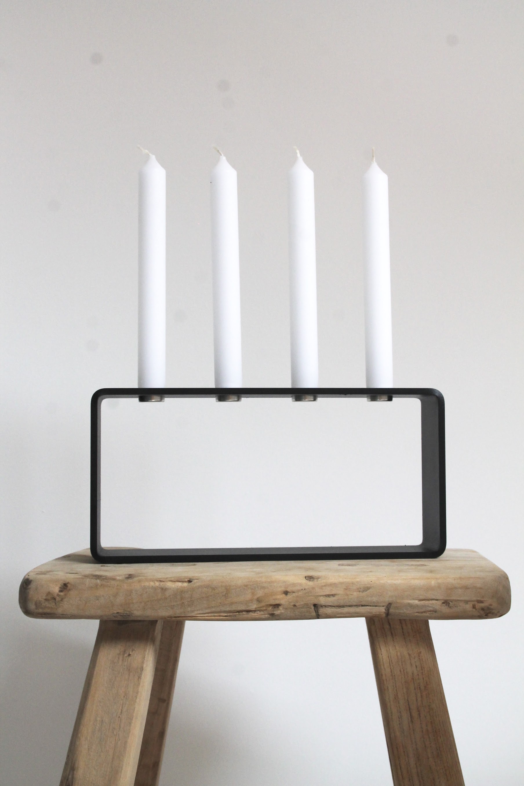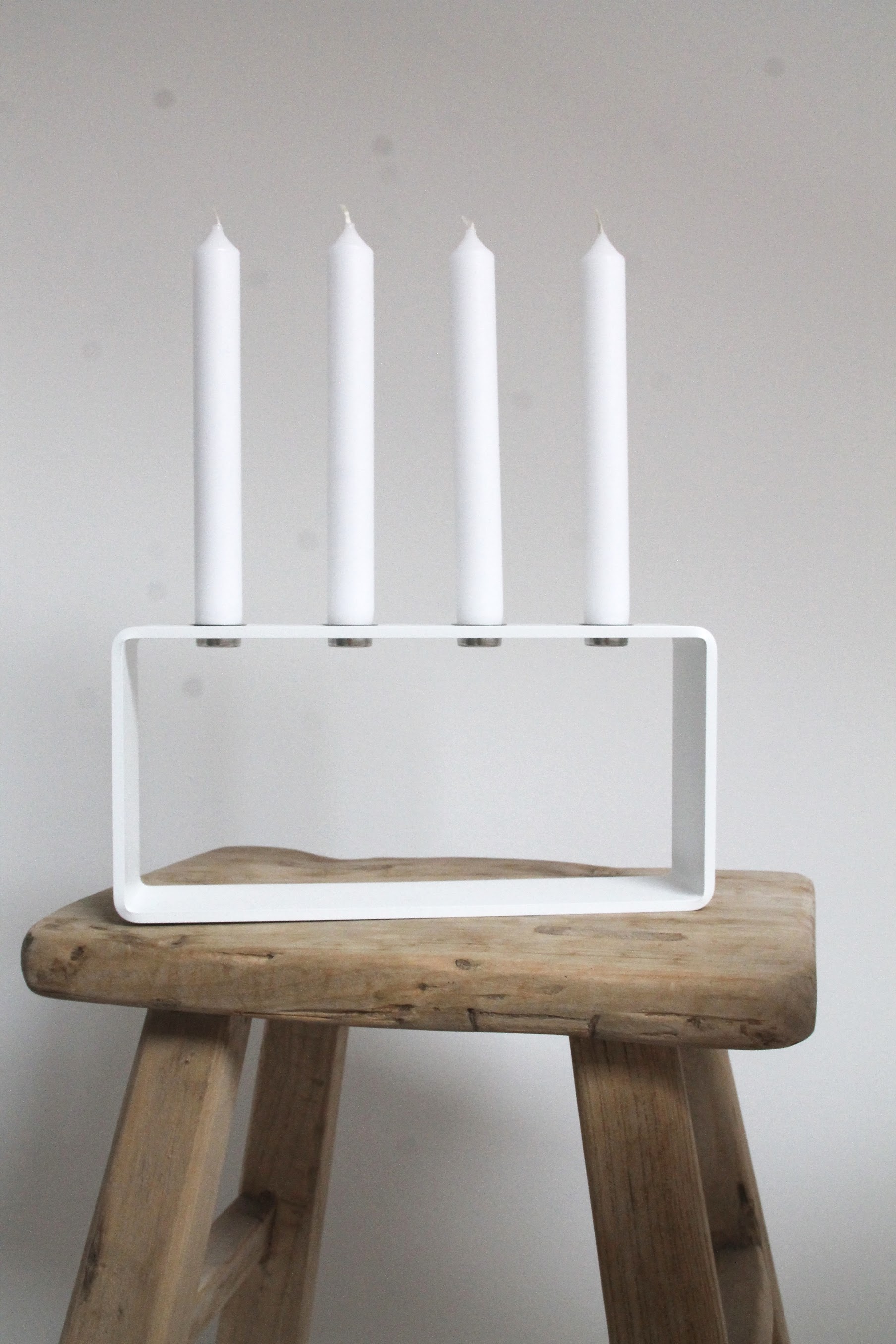 Kerzenständer FOURGLOW vereint ein modernes und schlichtes Design. Der moderne Kerzenständer für vier lange Kerzen besteht aus massivem Stahl und wiegt 1.681 g – nicht wenig für einen Kerzenständer. Dafür rutscht er aber auch nicht versehentlich vom Tisch. Der harte Stahl ist pulverbeschichtet in der Farbe Schwarz oder Weiß. Du erhältst mit FOURGLOW einen super stylischen Kerzenständer made in Germany (Hamburg).