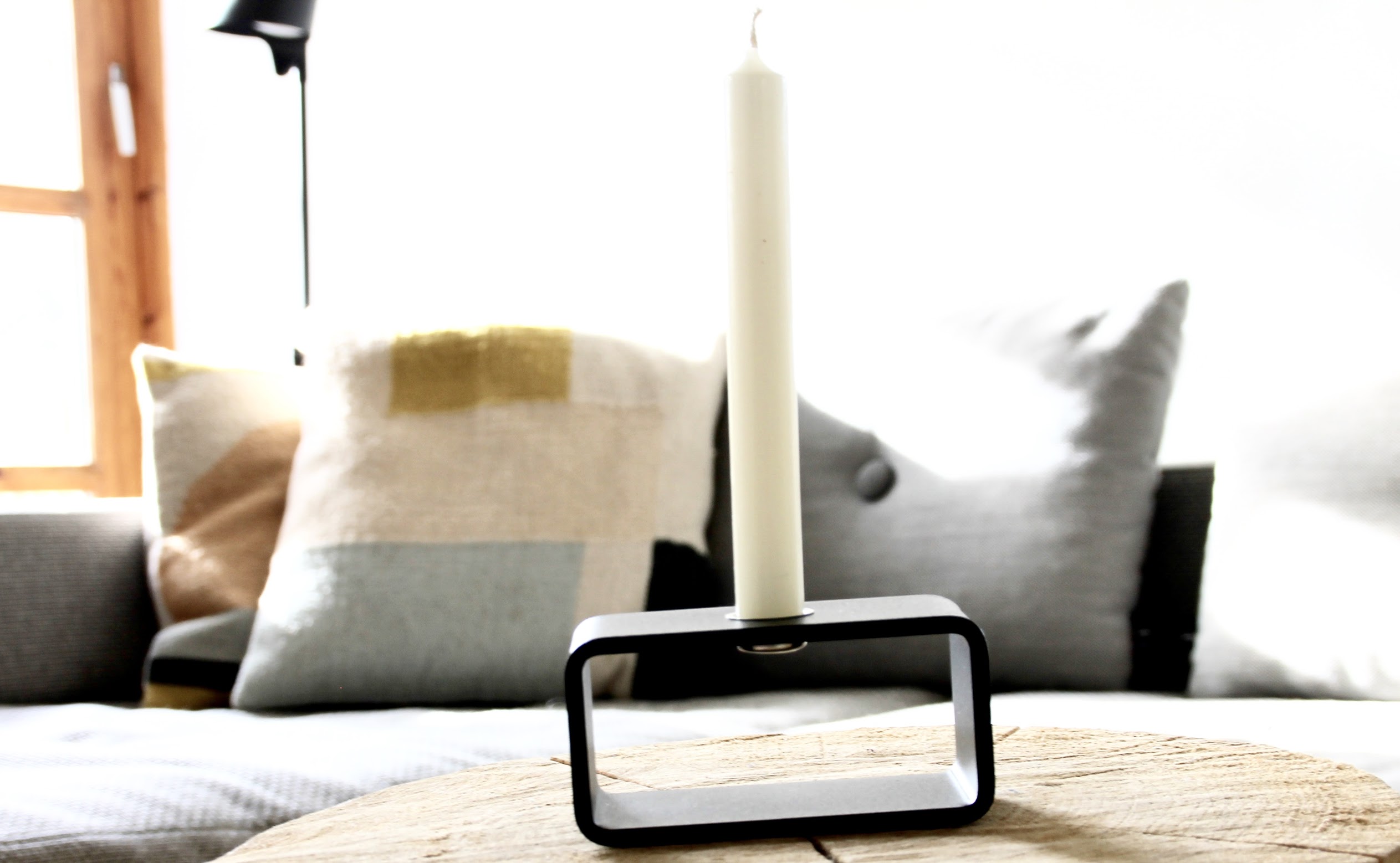 Kerzenständer ONEGLOW vereint ein modernes und schlichtes Design. Der moderne Kerzenständer für eine Kerze besteht aus massivem Stahl und wiegt daher auch 722 g – nicht wenig für einen Kerzenständer. Dafür rutscht er aber auch nicht versehentlich vom Tisch. Der harte Stahl ist pulverbeschichtet in der Farbe Schwarz oder Weiß. Du erhältst mit ONEGLOW einen super stylischen Kerzenständer für dein Zuhause.