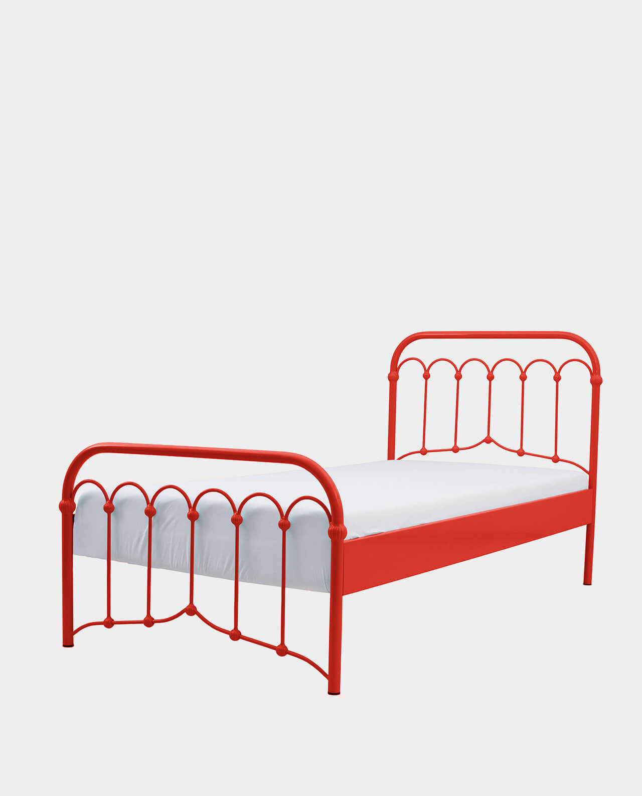 Das moderne Kinderbett AVIA der Marke Notoria bringt Farbe ins Kinderzimmer. Es besteht aus robustem Eisen, welches mit einem schadstofffreien Lack überzogen ist. Diese Materialkombination ist perfekt für den Einsatz im Kinderzimmer. Wo Holzbetten schnell eine Schramme abbekommen, hält das robuste Kinderbett AVIA allen äußeren Einwirkungen stand. Bei der Lackierung handelt es sich um hochwertigen Pulverlack, der lange hält und nicht abblättert. Das handgefertigte Bett in der Größe 90×200 cm passt perfekt in jedes Kinderzimmer.