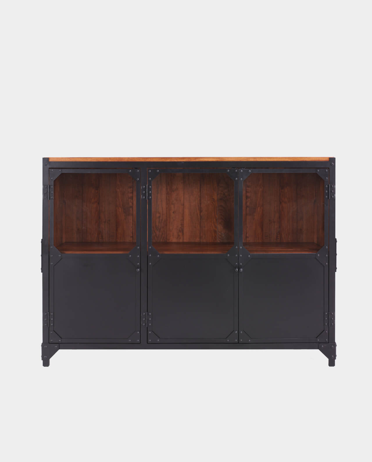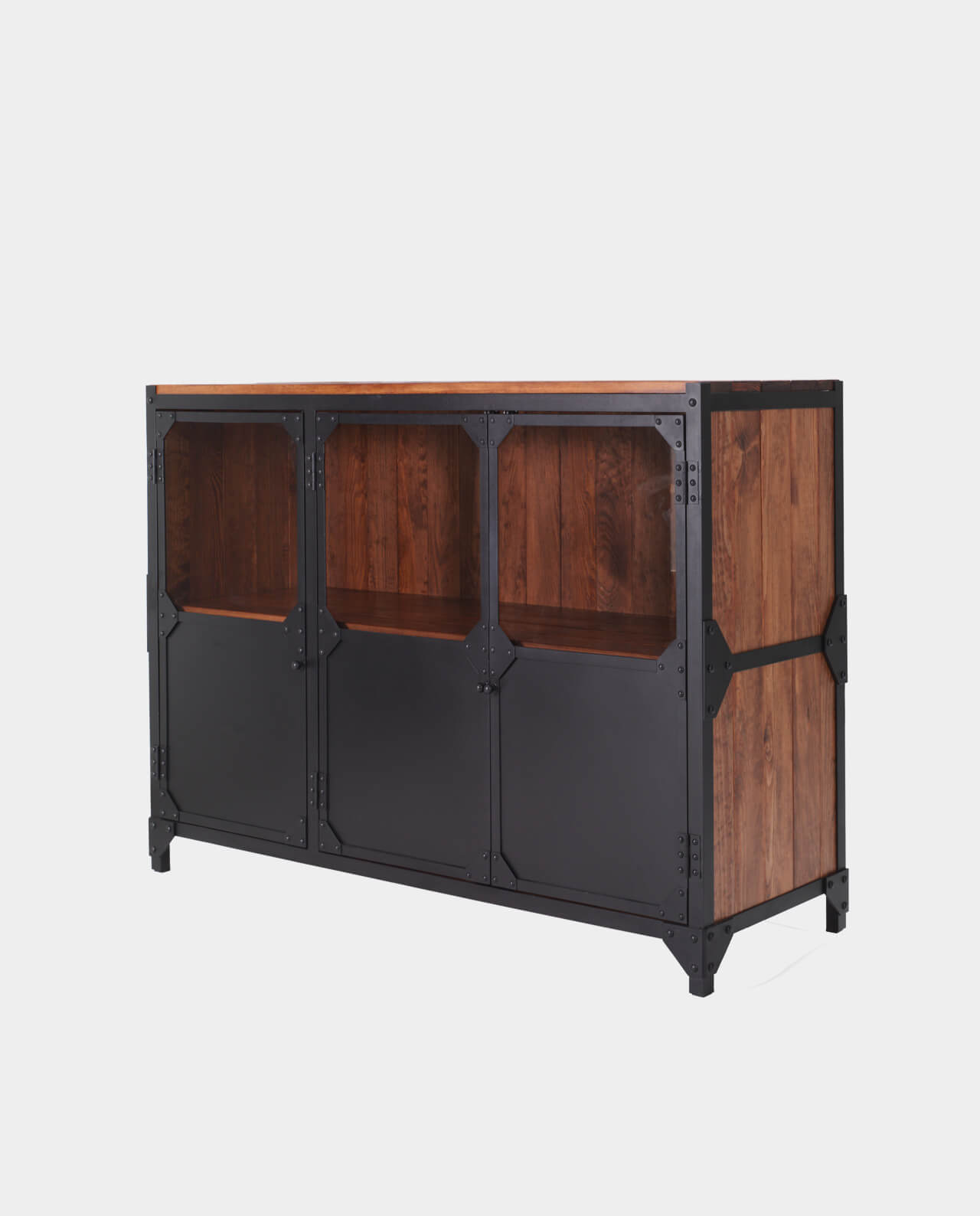 Du hättest gerne ein bisschen Loft-Flair in deiner Wohnung? Kein Problem, die Kommode BROOKLYN der Marke Notoria bringt mehr als das mit. Im coolen Industriestil aus Stahl und robusten, gebeizten Kiefernholz bekommst du ein Unikat aus Handarbeit. Die moderne Kommode hat drei Türen und im Inneren befinden sich außerdem zwei Ebenen. Die obere Ebene ist durch das Glas in den Türen einsehbar. Es steckt sehr viel Liebe zum Detail in BROOKLYN. Mit einer Höhe von 100cm hat die Kommode daher die optimale Höhe um Dekoration wie Vasen perfekt in Szene zu setzen. Unebenheiten sind keine Mängel, sondern gewollt und geben der Kommode erst ihre Einzigartigkeit.