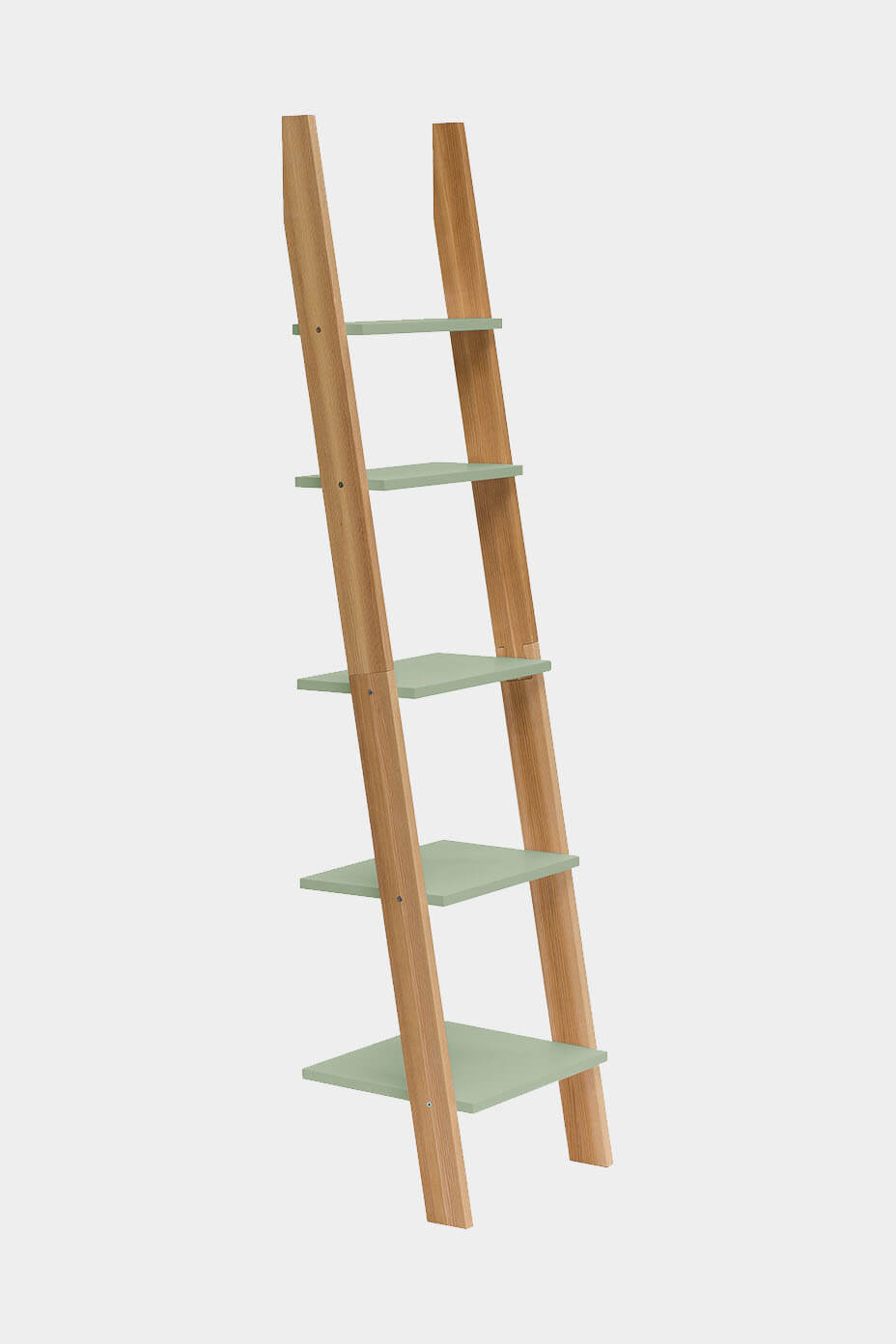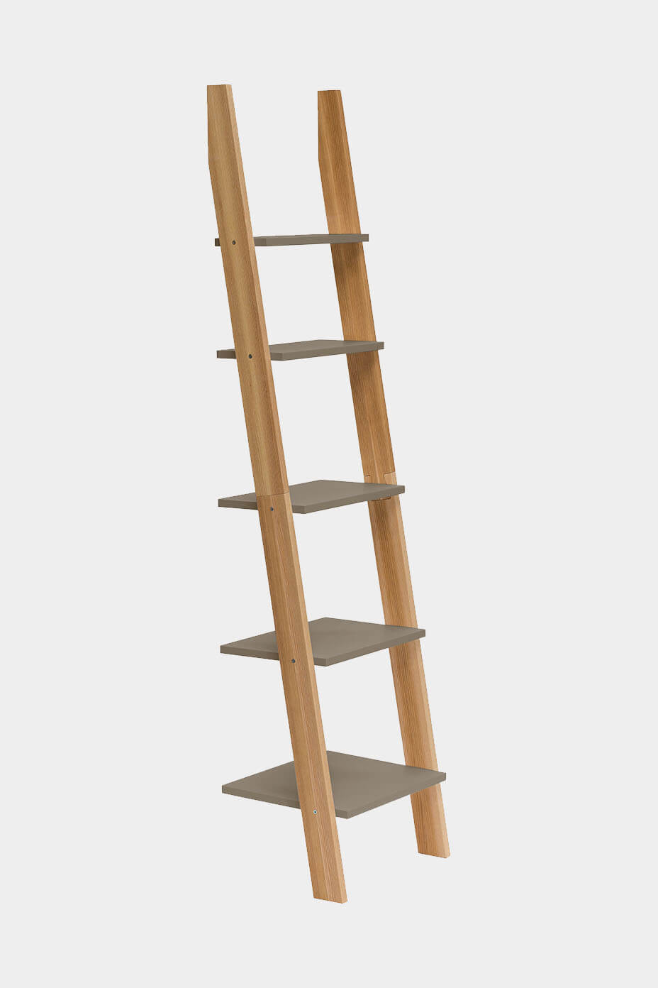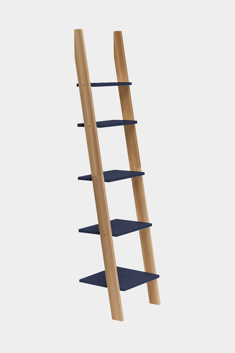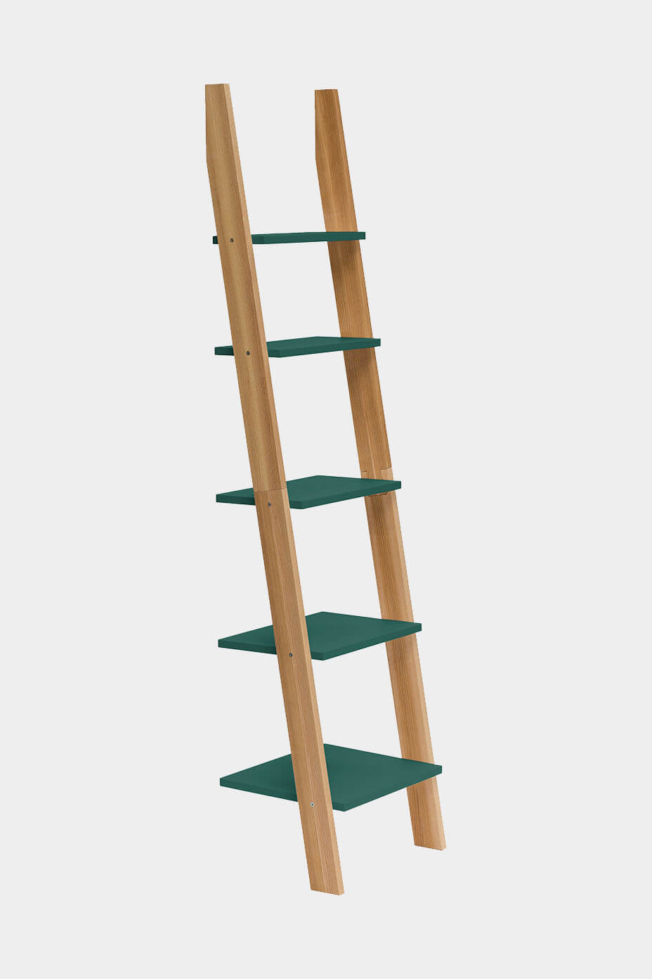 Leiterregal ASHME aus hochwertigem Eschenholz ist in verschiedenen modernen Farben erhältlich. Jede dieser Farben macht das Leiterregal ASHME zu einem echten Hingucker. Die Regalböden bestehen aus farbigen MDF-Platten. Das Leiter-Regal überzeugt im modernen Design und kann zudem ganz problemlos und einfach an jede Wand angelehnt werden. Die Dekoleiter hat die Maße 180cm x 45cm x 35cm (Höhe x Länge x Breite). Das Regal ist dank seiner Material Kombination sehr robust und stabil. Beachte aber bitte, dass dieses Leiter-Regal nicht als Steighilfe gedacht ist. Es dient ausschließlich zu dekorativen Zwecken.