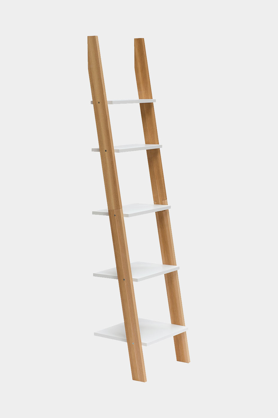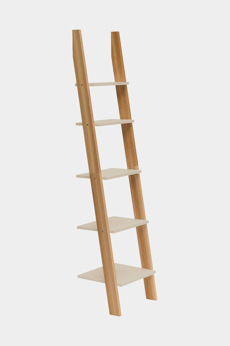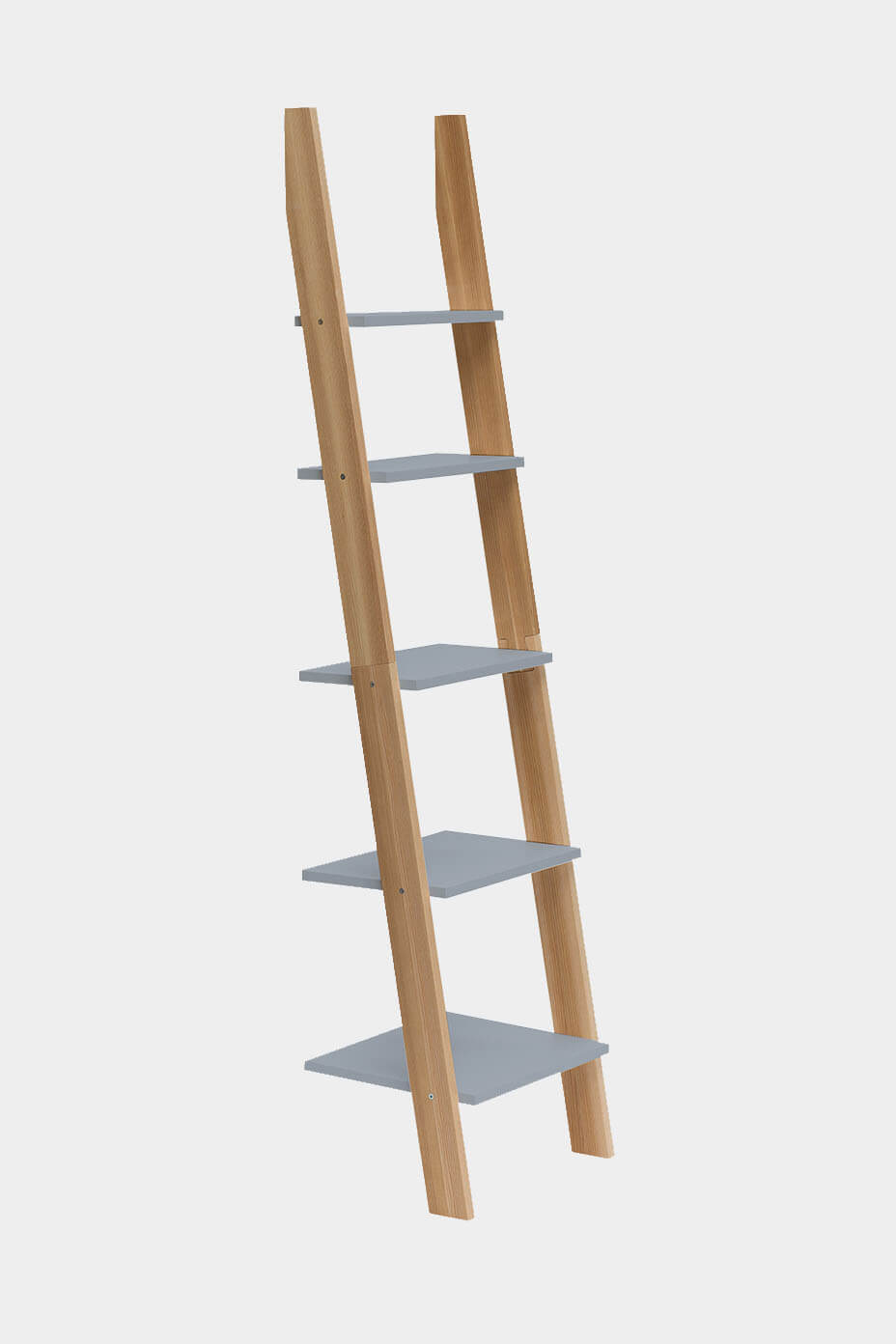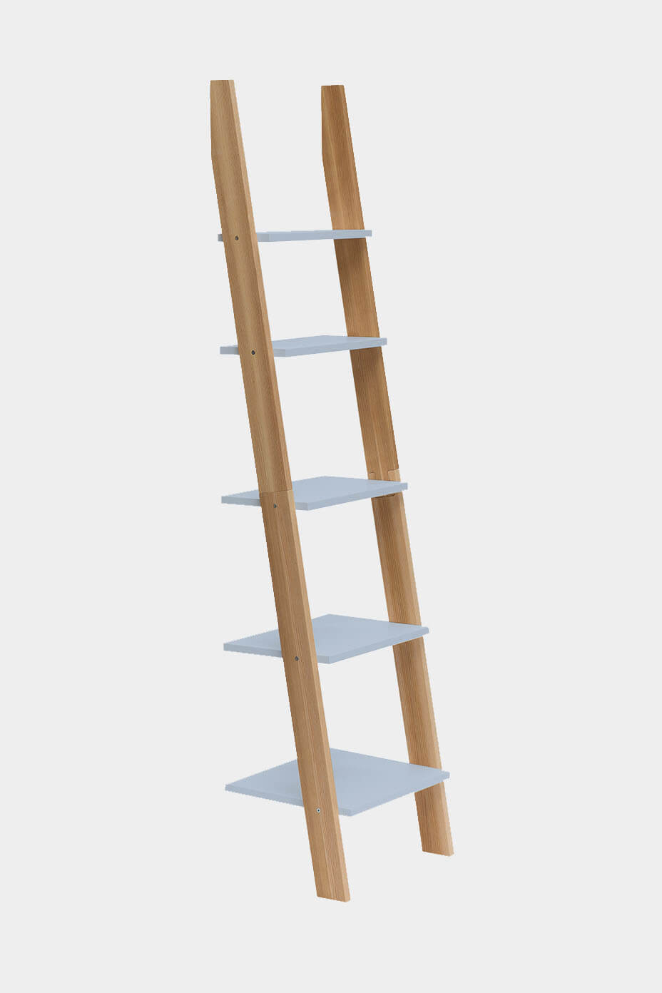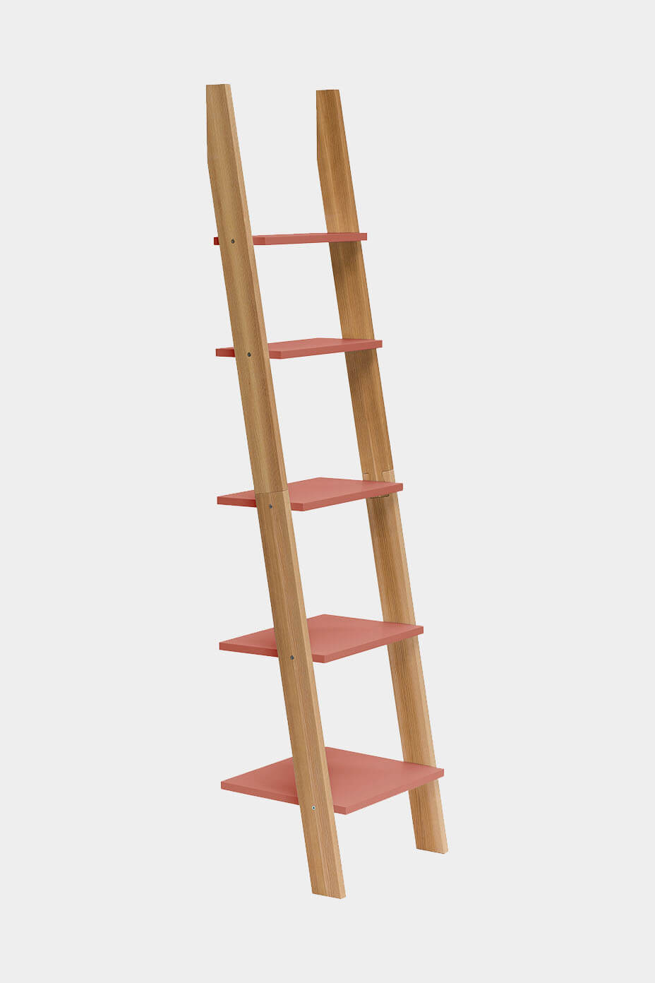 Leiterregal ASHME aus hochwertigem Eschenholz ist in verschiedenen modernen Farben erhältlich. Jede dieser Farben macht das Leiterregal ASHME zu einem echten Hingucker. Die Regalböden bestehen aus farbigen MDF-Platten. Das Leiter-Regal überzeugt im modernen Design und kann zudem ganz problemlos und einfach an jede Wand angelehnt werden. Die Dekoleiter hat die Maße 180cm x 45cm x 35cm (Höhe x Länge x Breite). Das Regal ist dank seiner Material Kombination sehr robust und stabil. Beachte aber bitte, dass dieses Leiter-Regal nicht als Steighilfe gedacht ist. Es dient ausschließlich zu dekorativen Zwecken.