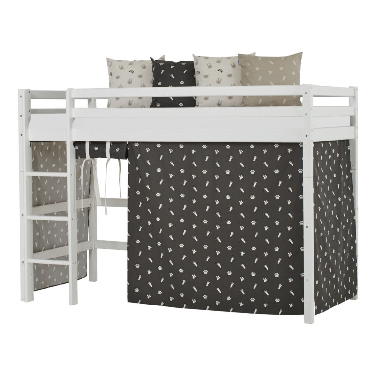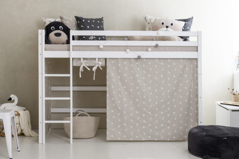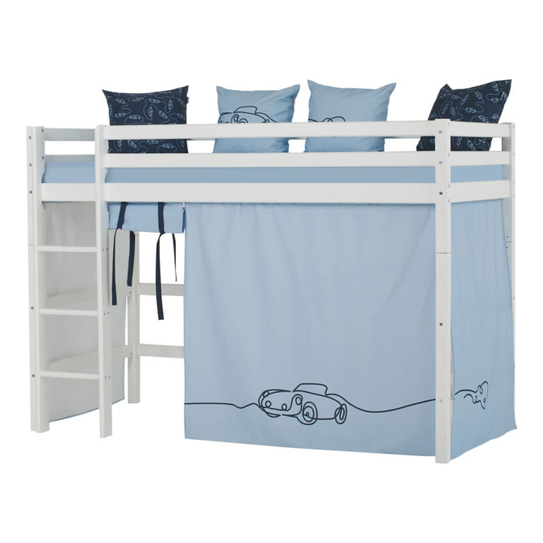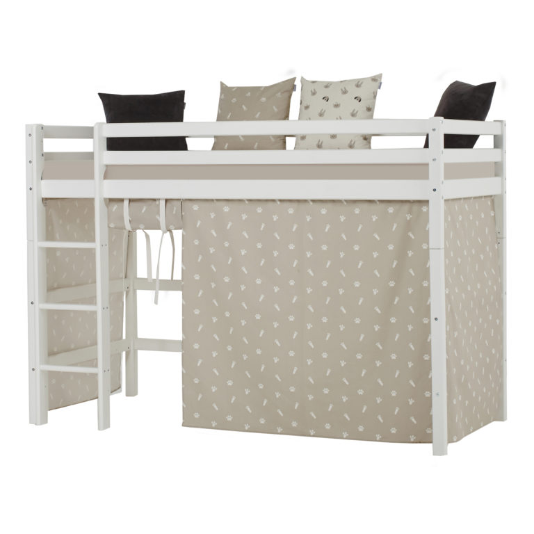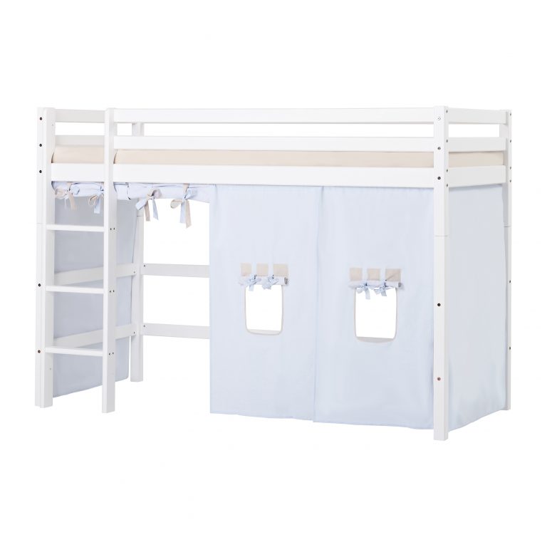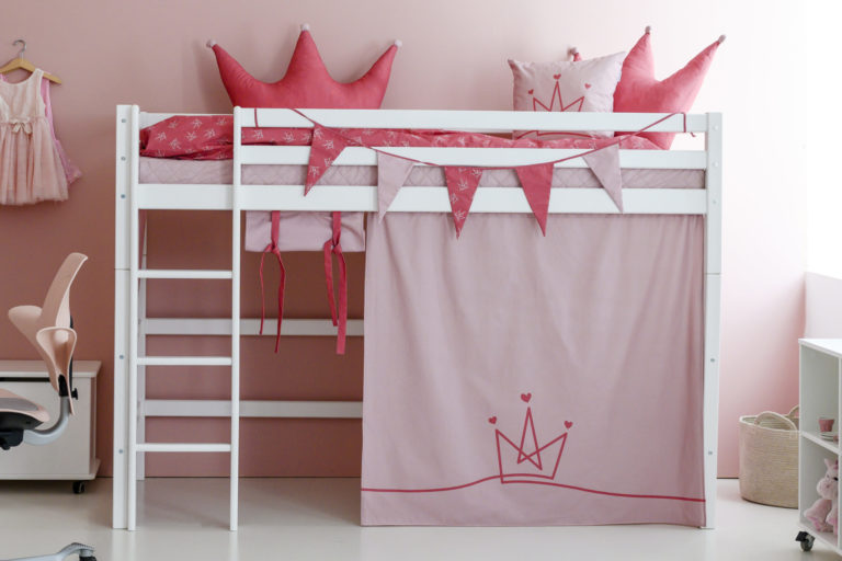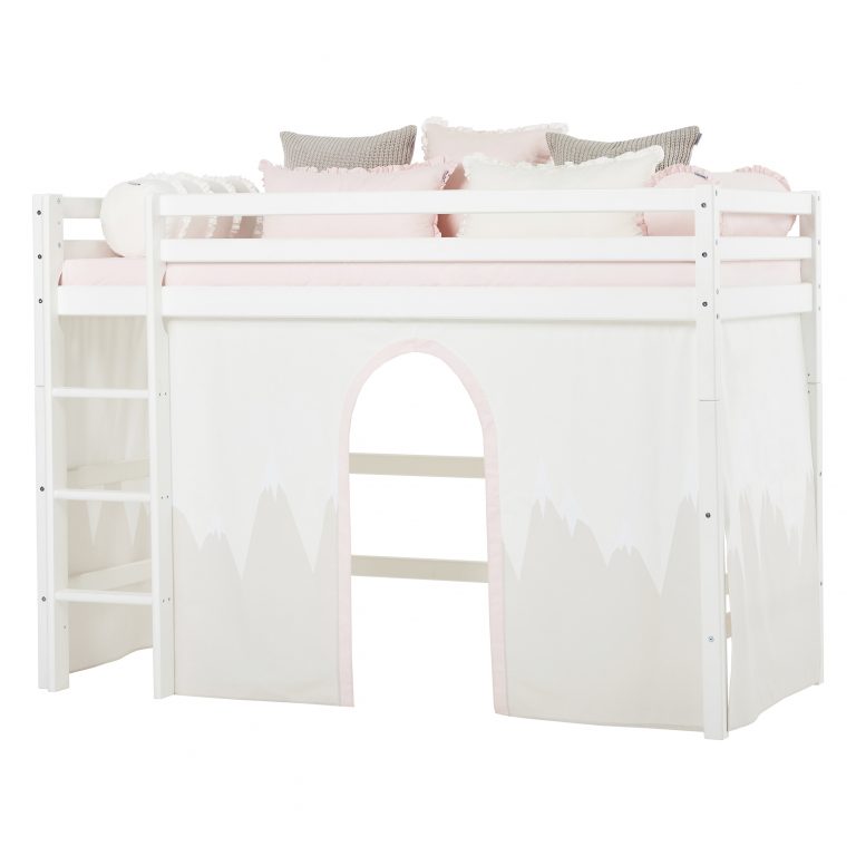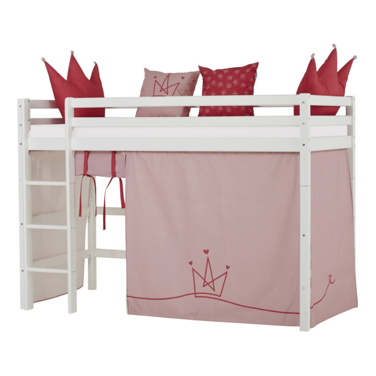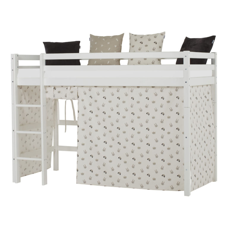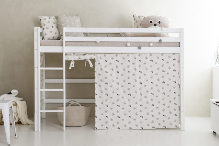 Das ECO LUXURY Mittelhochbett von Hoppekids in 90×200 cm oder 120×200 cm wird aus massiver nordischer Kiefer gefertigt und ist mit dem Nordischen Umweltzeichen ausgezeichnet. Das Mittelhochbett in 90×200 cm ist wahlweise mit einem Vorhang erhältlich, der ans Bett gehangen wird und somit eine gemütliche Höhle erschafft. Unter dem Bett beträgt die Höhe 108 cm. Die Gesamthöhe vom Mittelhochbett liegt bei 150 cm. Das Bett kann mit einem Gewicht von max. 100kg belastet werden. Die Leiter kann sowohl auf der linken als auch an der rechten Frontseite des Bettes angebracht werden. Die Leiter hat Rillen und tiefe Stufen. Dadurch hat das Kind beim Aufstieg einen besseren Halt. ECO LUXURY ist ein flexibles und langlebiges Mittelhochbett mit höchstem Komfort und größtmöglichem Augenmerk auf die Sicherheit. Dazu kommt die Stabilität und die lange Haltbarkeit sowie die breite Palette an Modulen und Zubehör. Das Bett ist modular umbaubar und kann in ein niedriges Kinderbett verwandelt werden. So wächst das Bett mit den Anforderungen und Bedürfnissen des Kindes. Lattenroste sind bereits in der Lieferung inklusive. Matratzen sind nicht inklusive. Dekorationen sind nicht Teil der Lieferung.