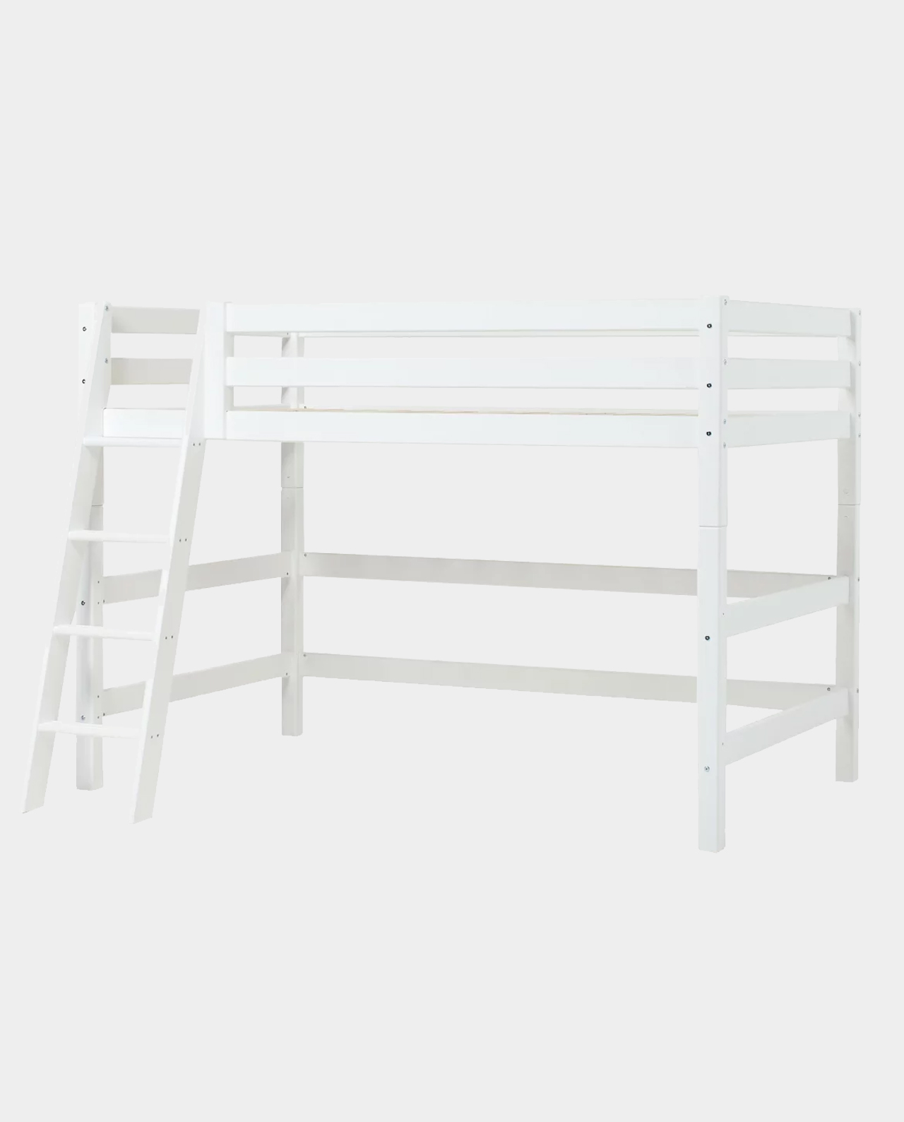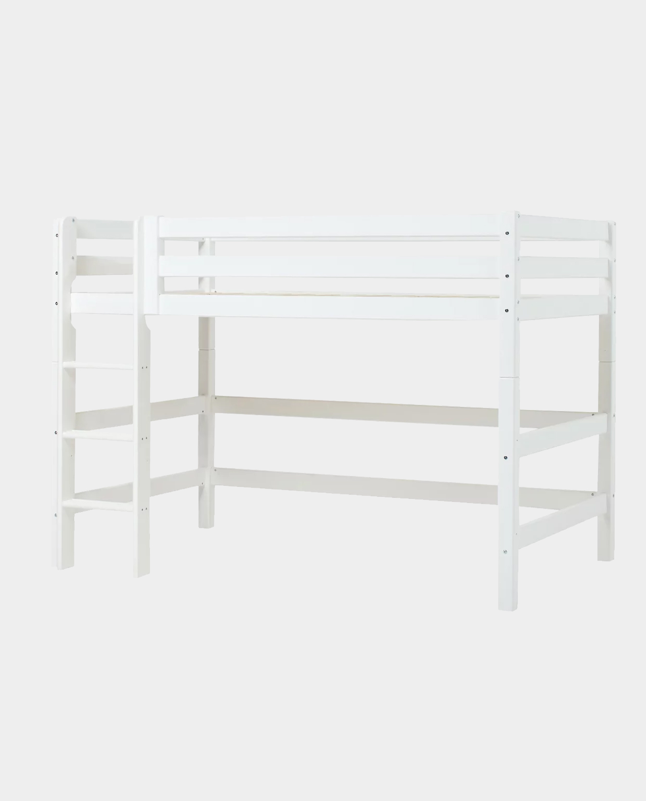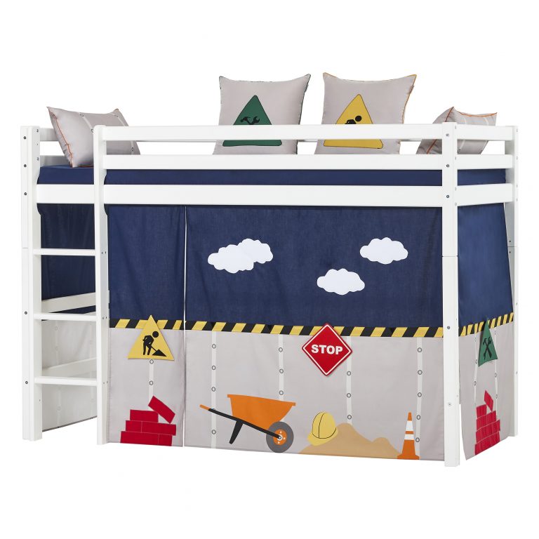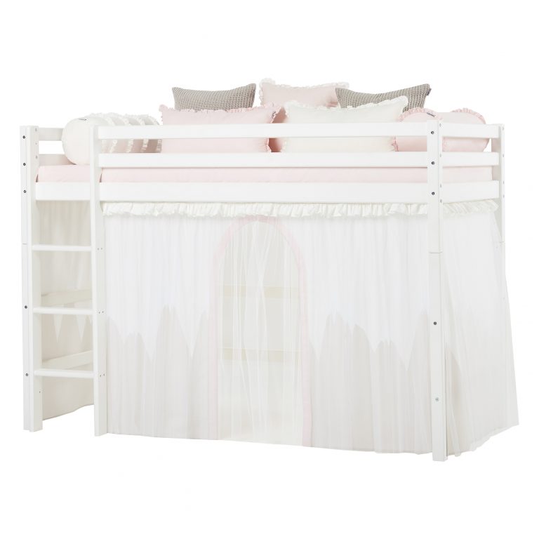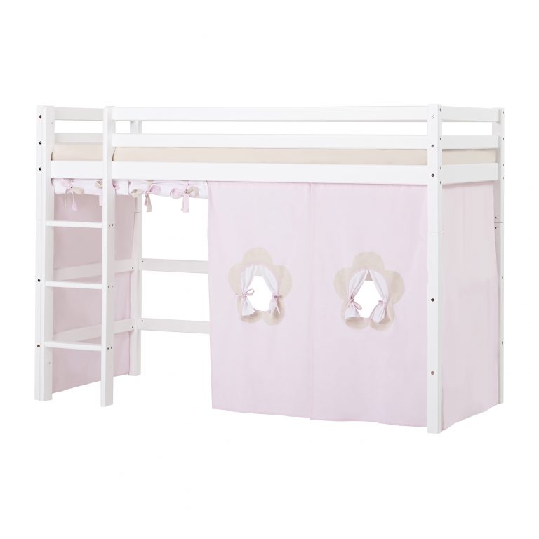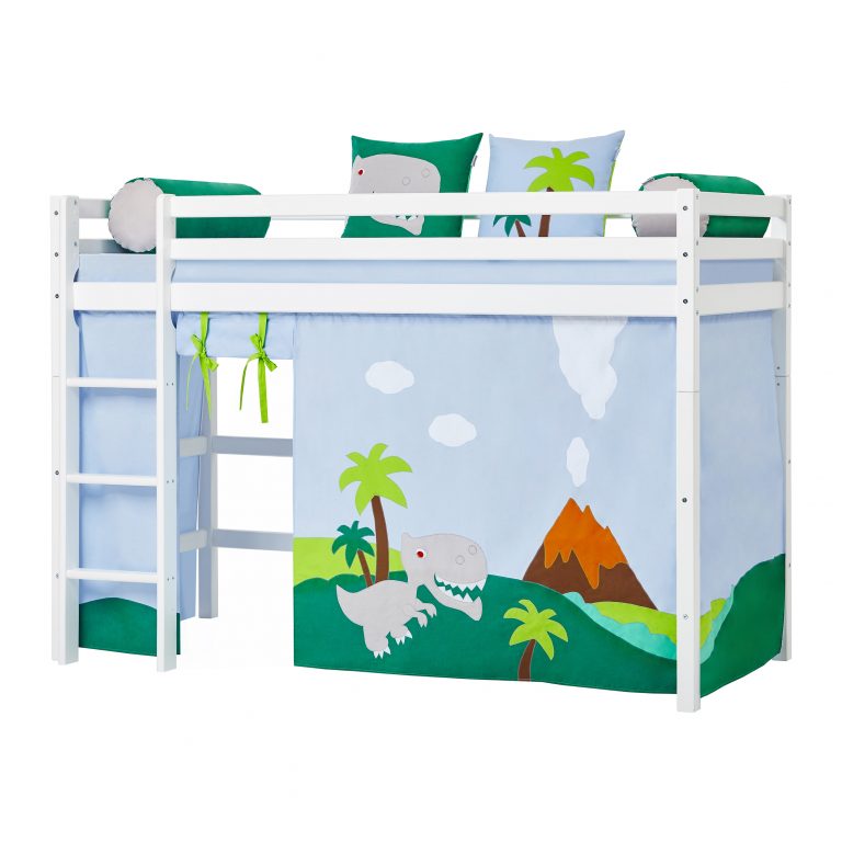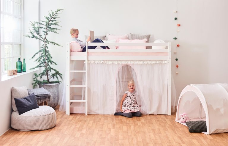 Das ECO LUXURY Mittelhochbett von Hoppekids in 90×200 cm oder 120×200 cm wird aus massiver nordischer Kiefer gefertigt und ist mit dem Nordischen Umweltzeichen ausgezeichnet. Das Mittelhochbett in 90×200 cm ist wahlweise mit einem Vorhang erhältlich, der ans Bett gehangen wird und somit eine gemütliche Höhle erschafft. Unter dem Bett beträgt die Höhe 108 cm. Die Gesamthöhe vom Mittelhochbett liegt bei 150 cm. Das Bett kann mit einem Gewicht von max. 100kg belastet werden. Die Leiter kann sowohl auf der linken als auch an der rechten Frontseite des Bettes angebracht werden. Die Leiter hat Rillen und tiefe Stufen. Dadurch hat das Kind beim Aufstieg einen besseren Halt. ECO LUXURY ist ein flexibles und langlebiges Mittelhochbett mit höchstem Komfort und größtmöglichem Augenmerk auf die Sicherheit. Dazu kommt die Stabilität und die lange Haltbarkeit sowie die breite Palette an Modulen und Zubehör. Das Bett ist modular umbaubar und kann in ein niedriges Kinderbett verwandelt werden. So wächst das Bett mit den Anforderungen und Bedürfnissen des Kindes. Lattenroste sind bereits in der Lieferung inklusive. Matratzen sind nicht inklusive. Dekorationen sind nicht Teil der Lieferung.