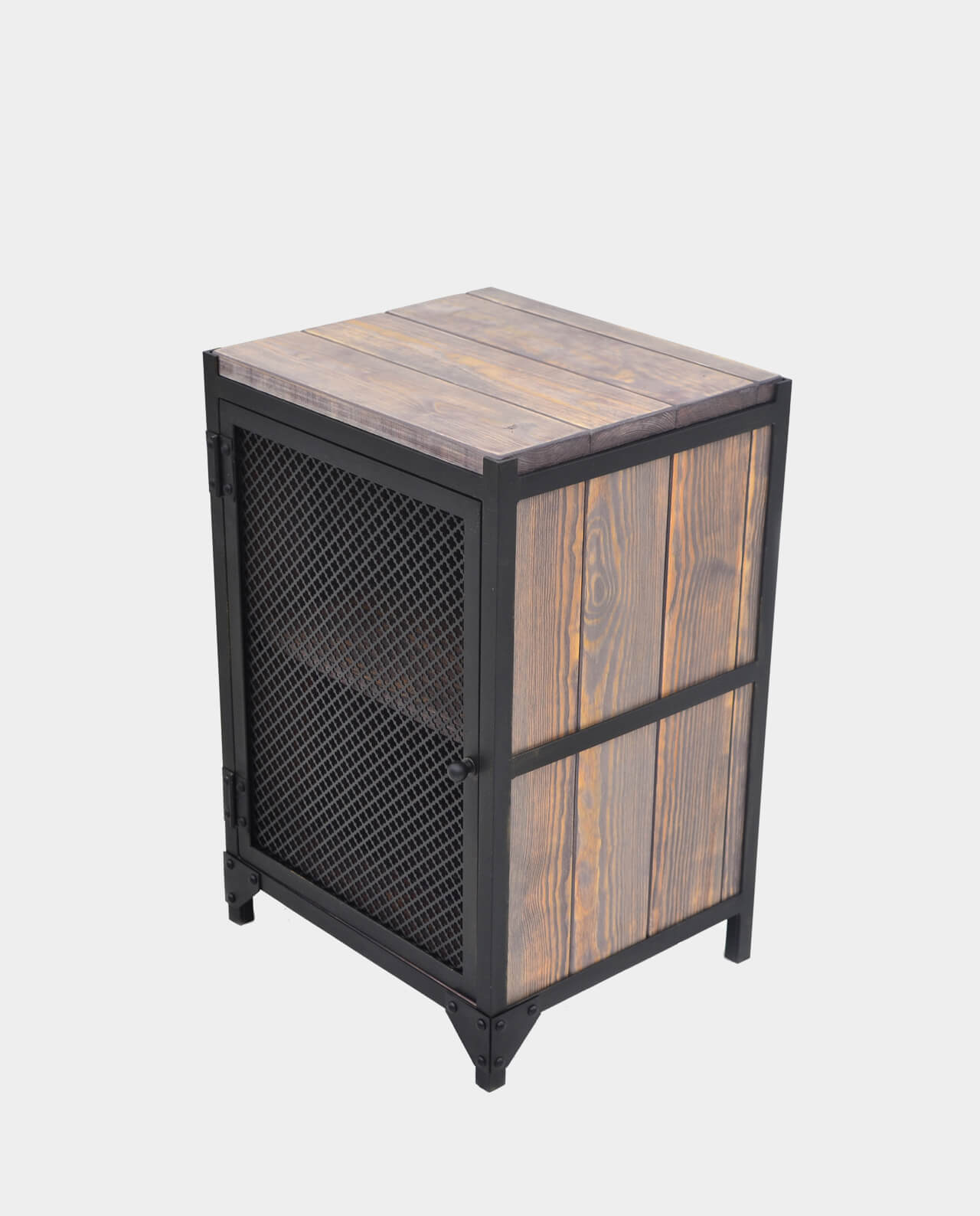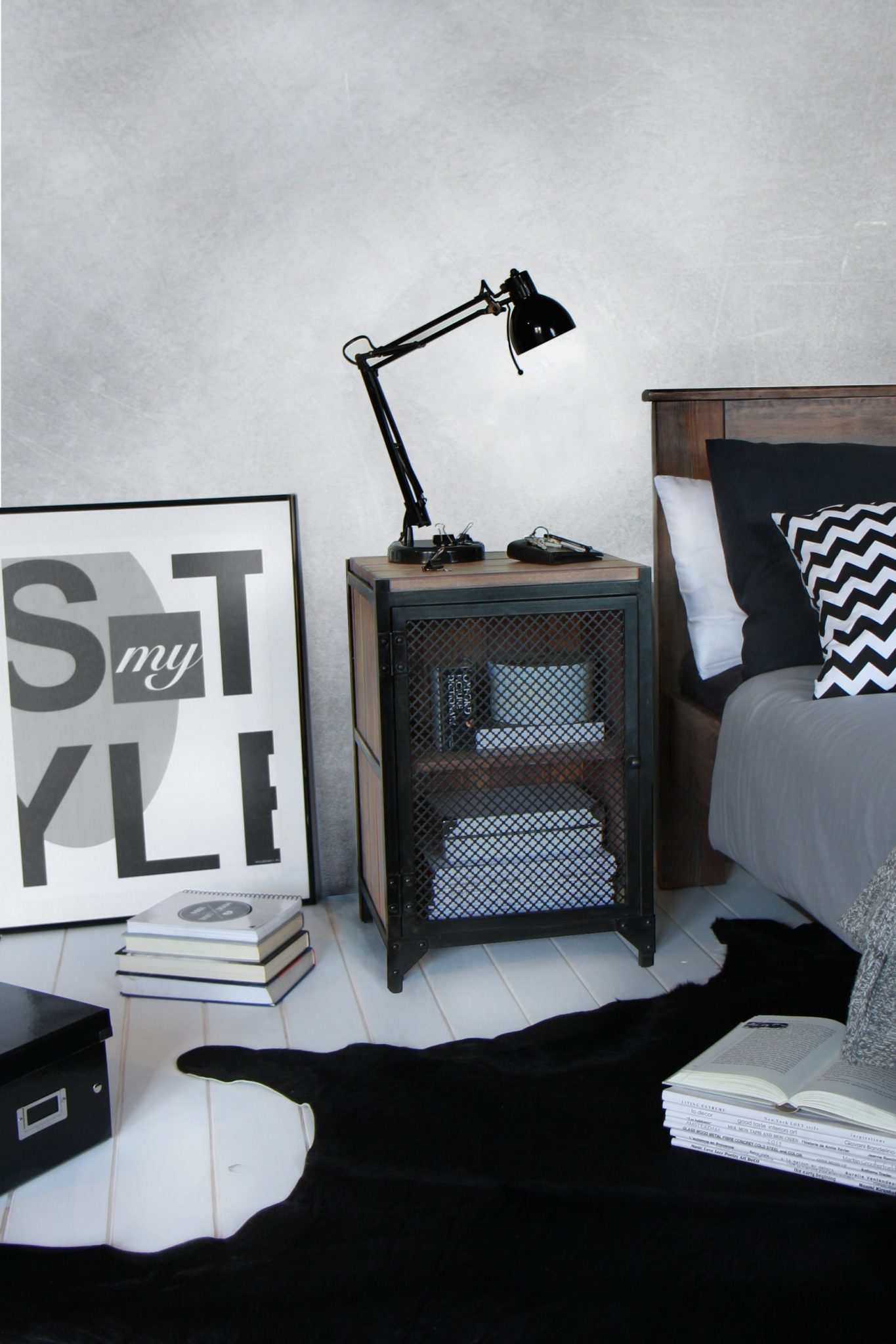 Stahl, Kieferholz – grau gebeizt