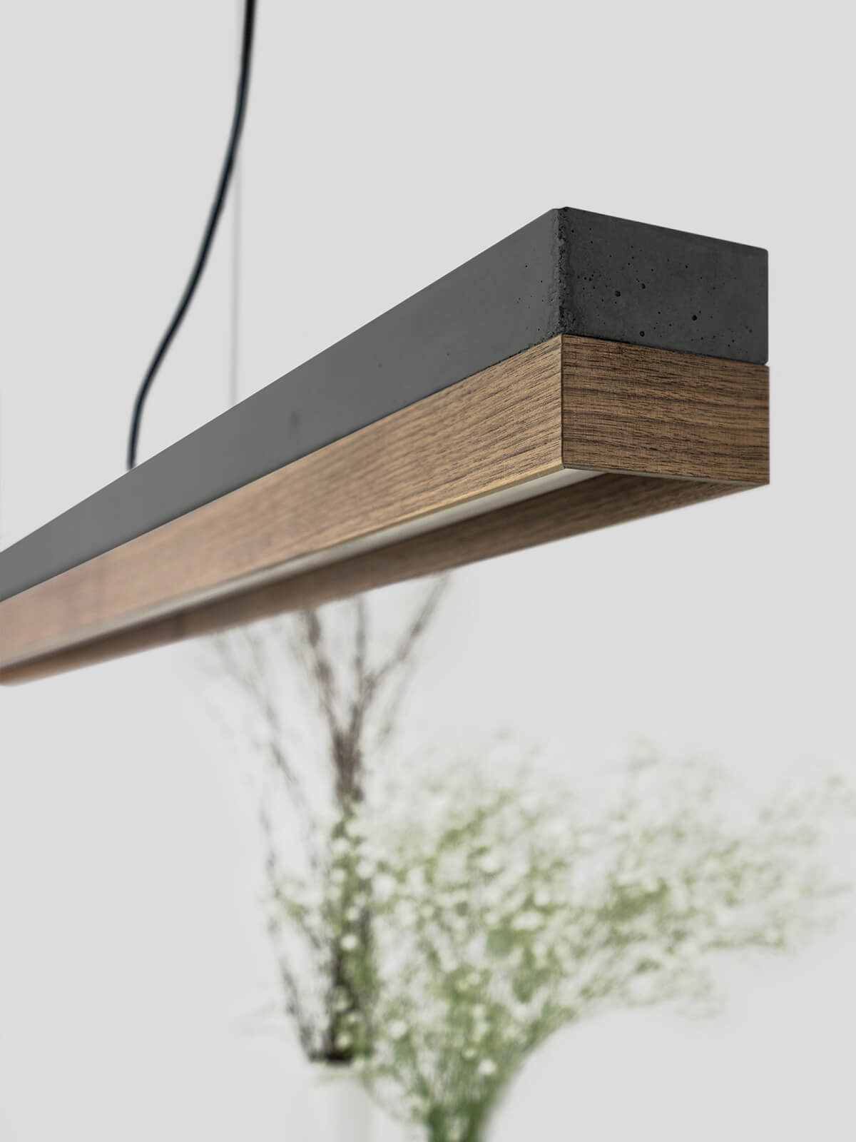 Die hochwertige Hängelampe C-NUT ist eine Kombi aus edlem Nussbaumholz und kühlem dunklen Beton, was die Pendelleuchte zu einer zeitlosen und eleganten Designerleuchte macht. Die unterschiedlichen Materialien der Lampenschirme (unterer Teil der Leuchte) lassen sich individuell kombinieren und können jederzeit gewechselt werden.