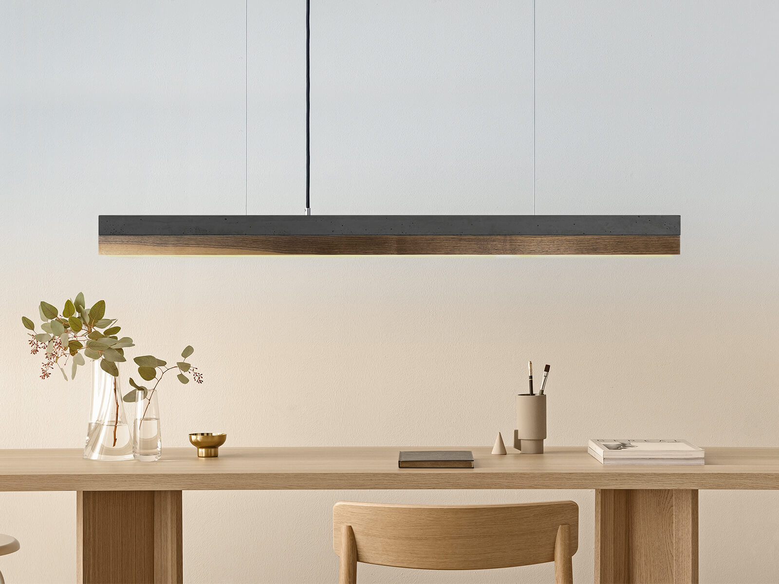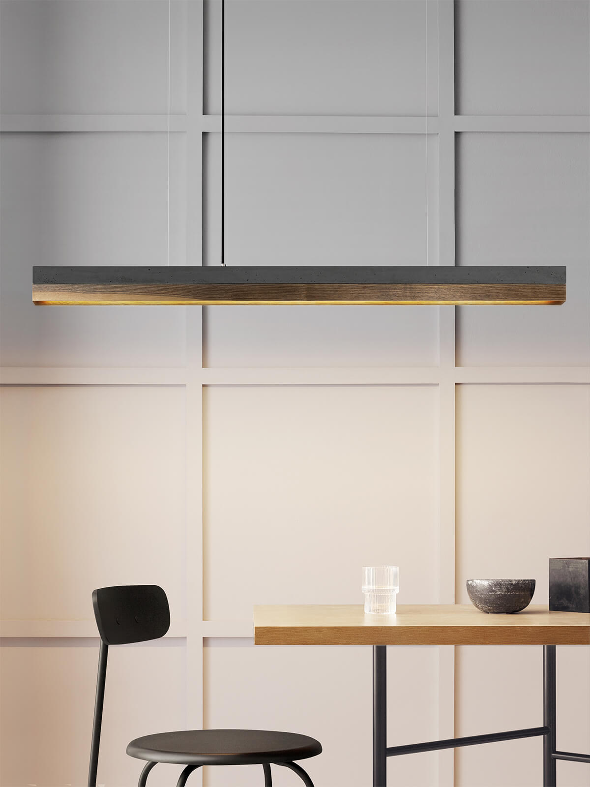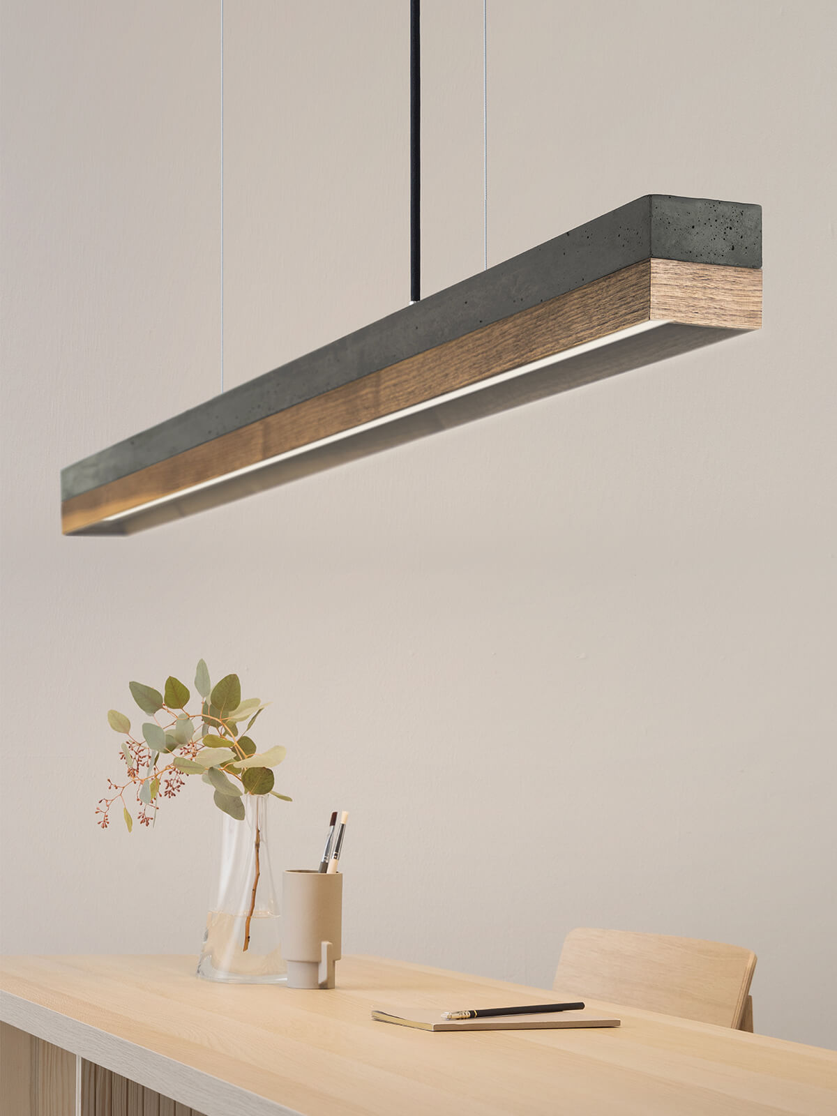 Bis zu einer Tischlänge von 200cm empfehlen wir die C1 Leuchte mit 122cm Länge.