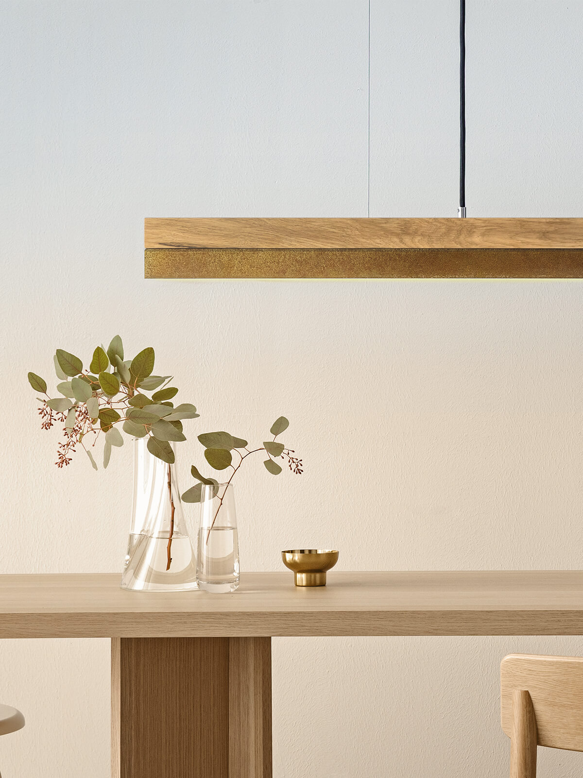 Bis zu einer Tischlänge von 200cm empfehlen wir die C1 Leuchte mit 122cm Länge.