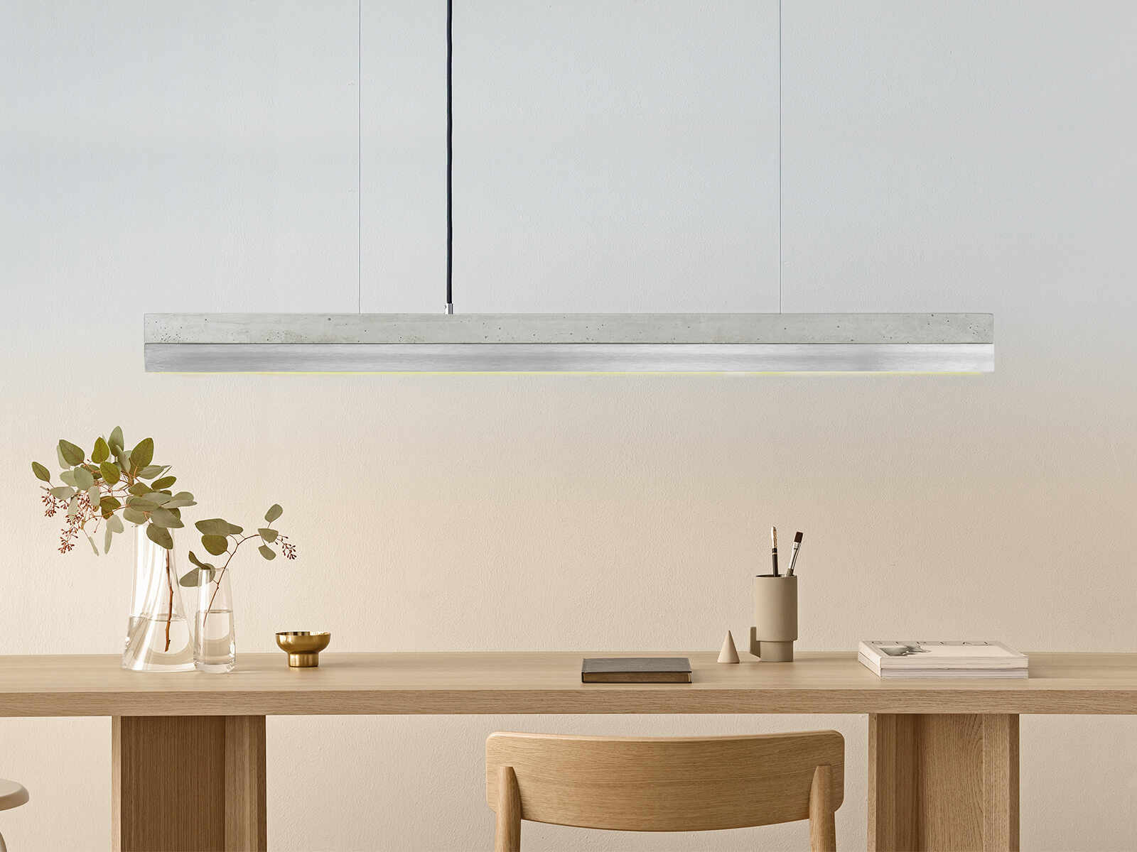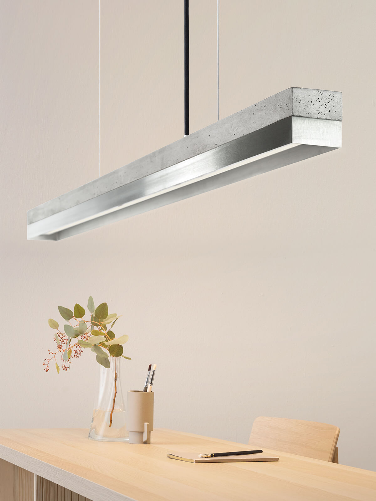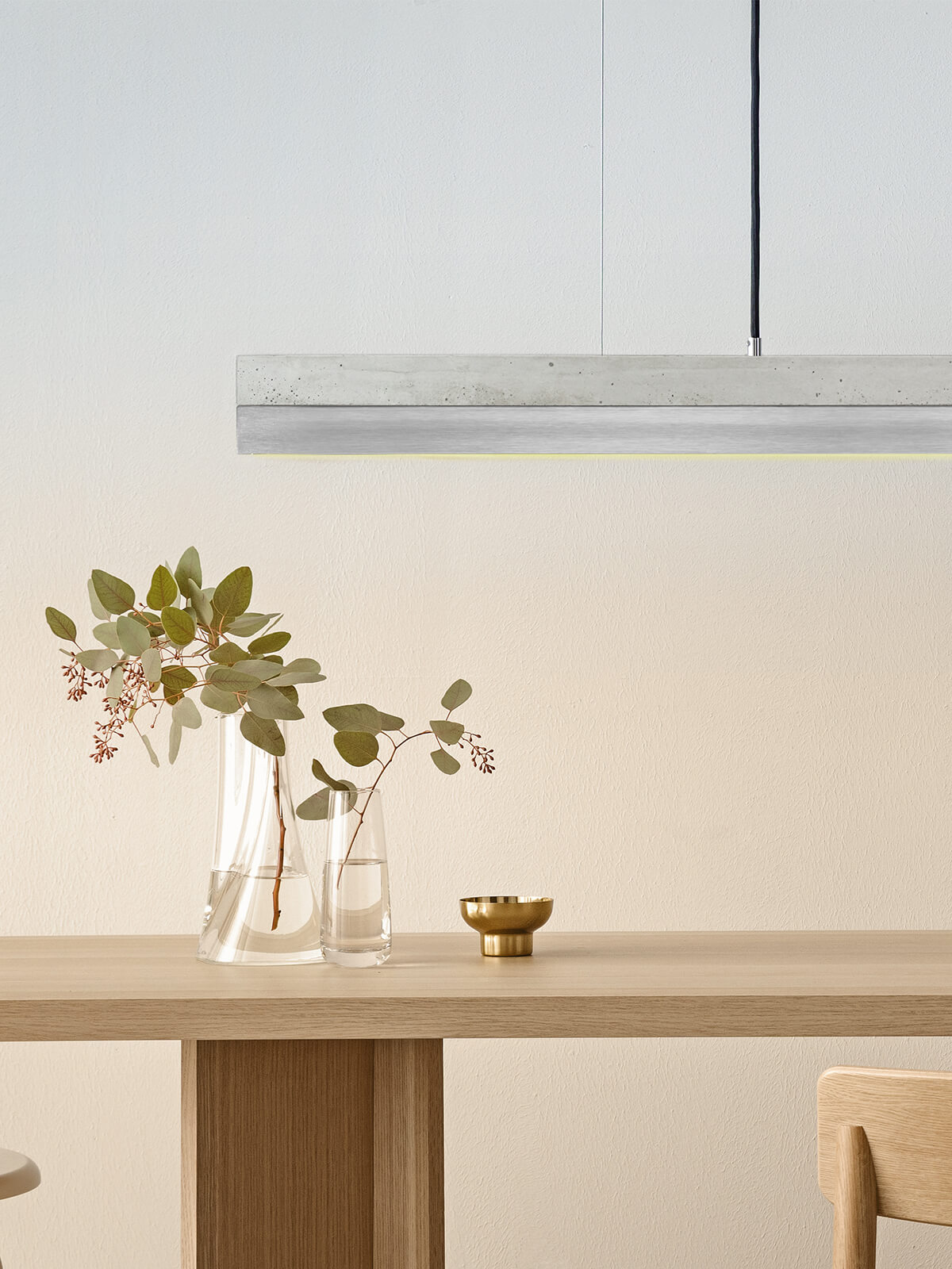 Bis zu einer Tischlänge von 200cm empfehlen wir die C1 Leuchte mit 122cm Länge.