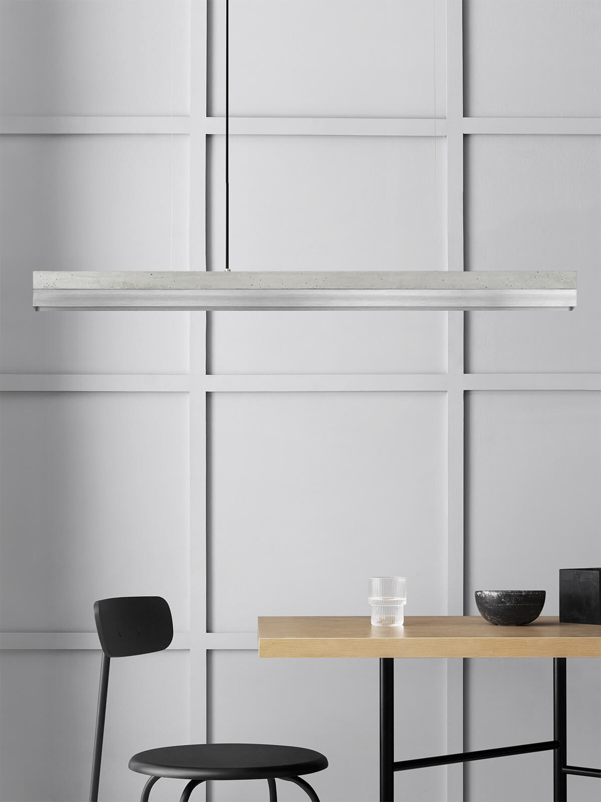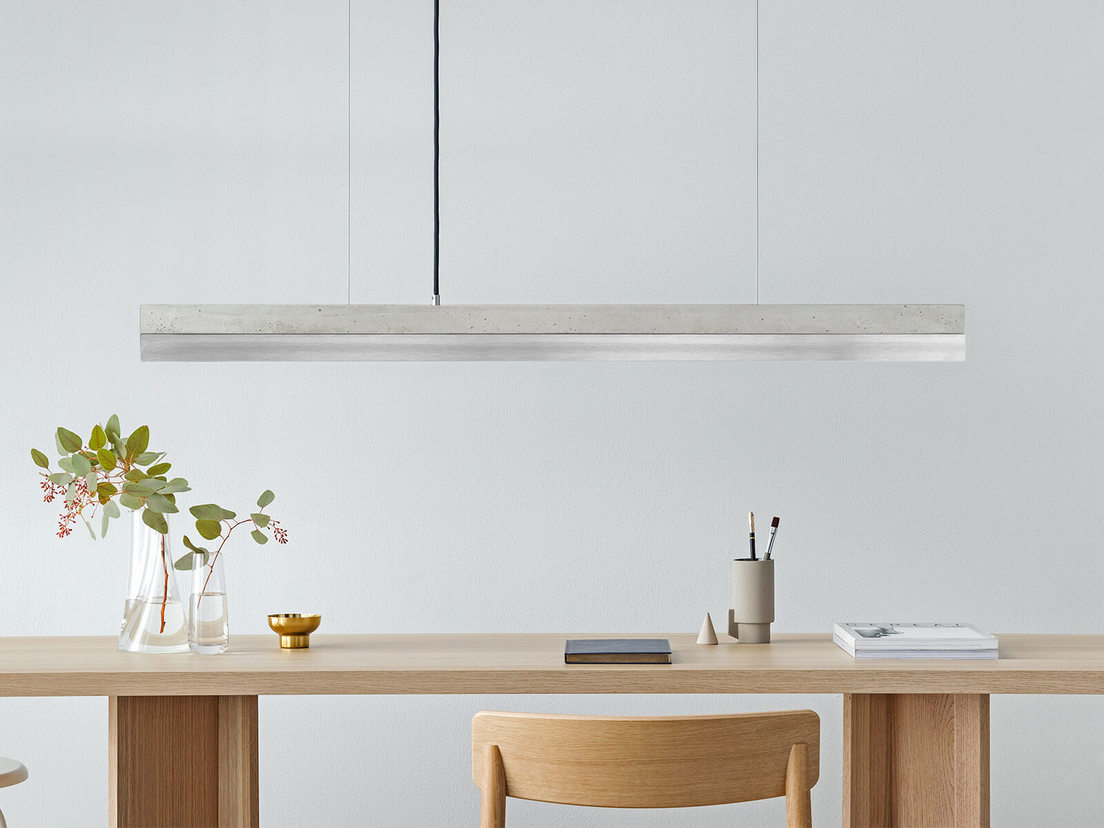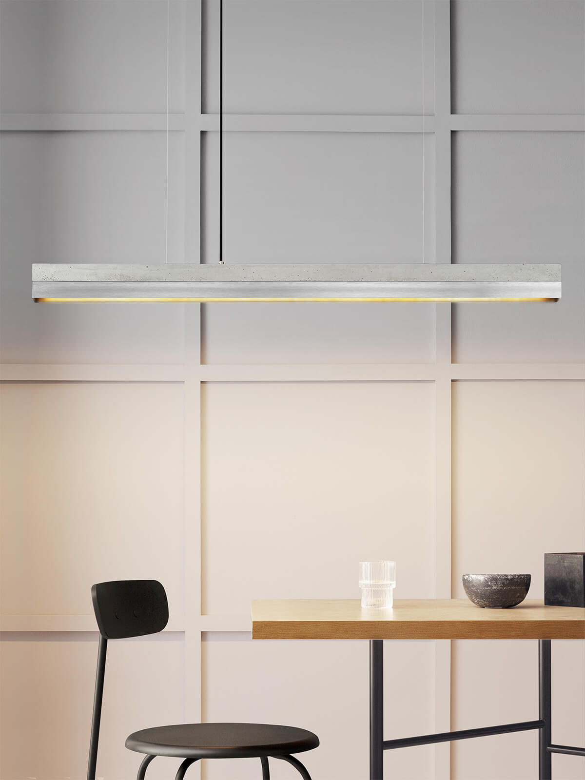 Bis zu einer Tischlänge von 200cm empfehlen wir die C1 Leuchte mit 122cm Länge.