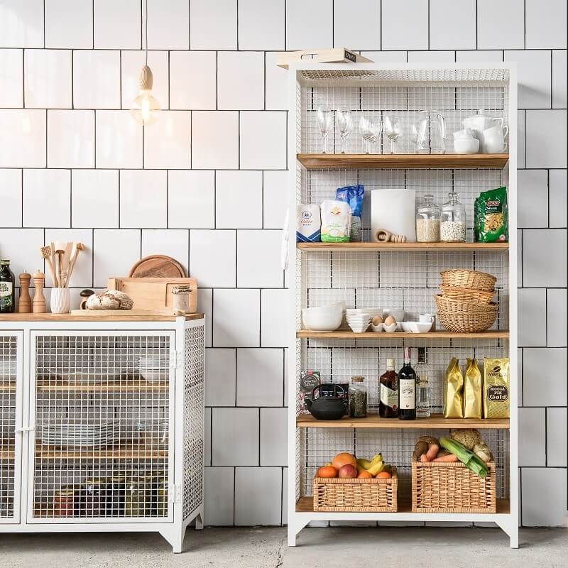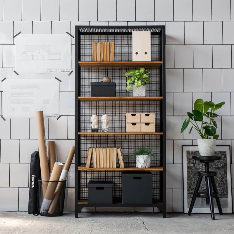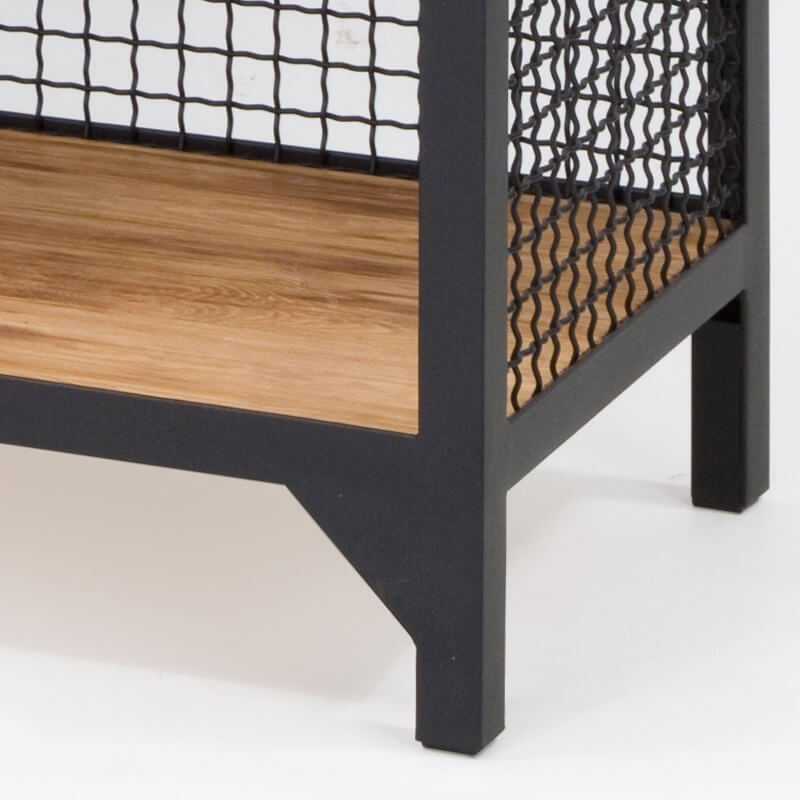 Regal CLATRI besteht aus Stahl, Wellengitter und Kiefernholz. Das hochqualitative und langlebige Regal im Industrie Design verleiht jedem Raum einen ganz besonderen Charme. Damit wird das Regal zu einem echten Blickfang.