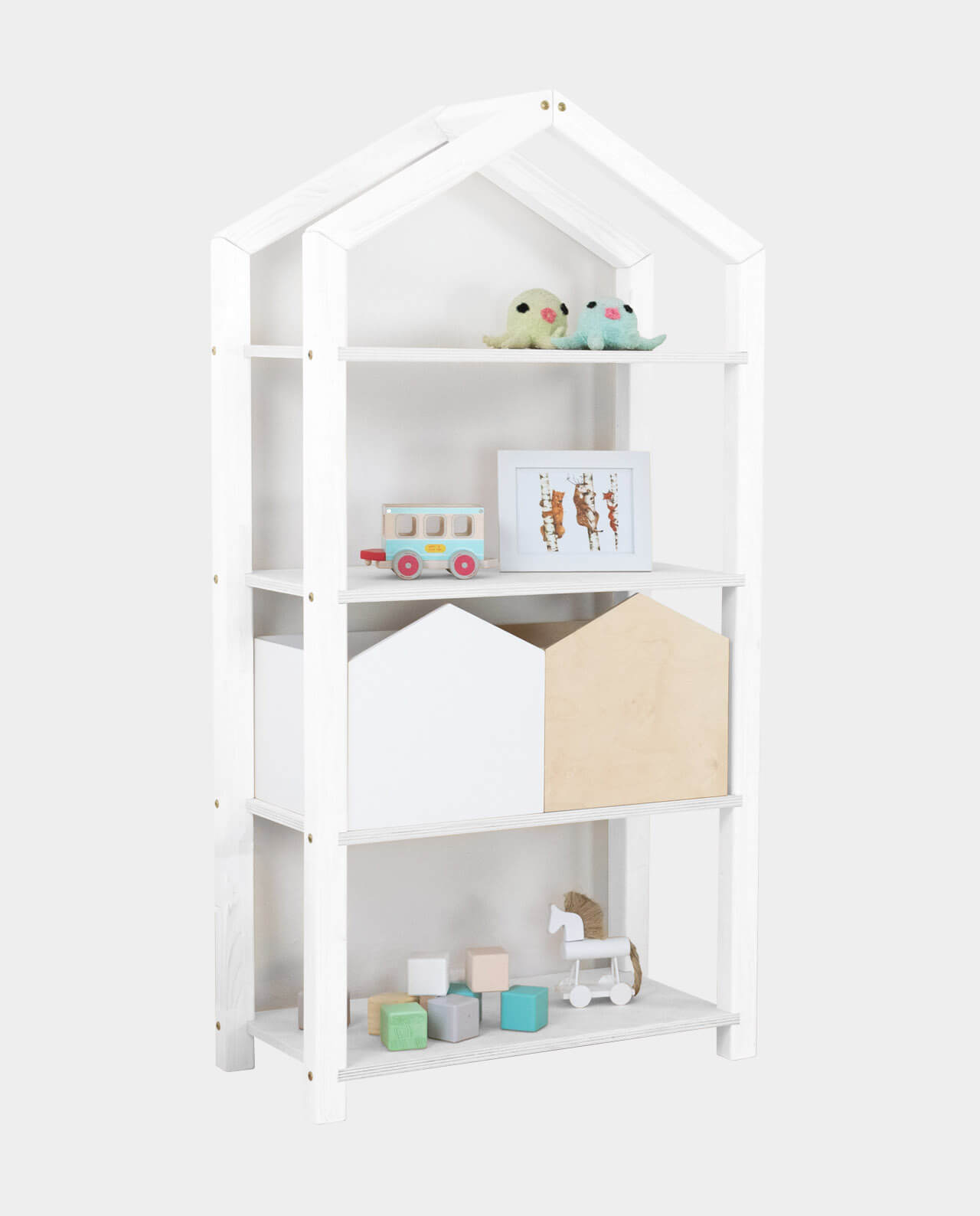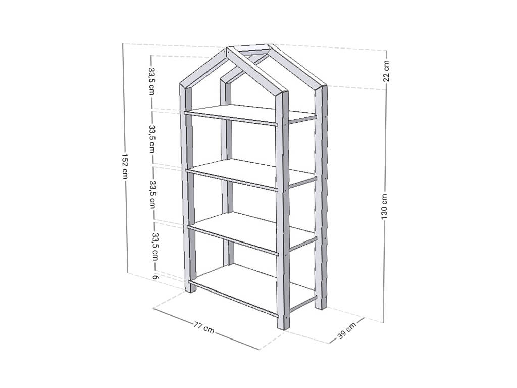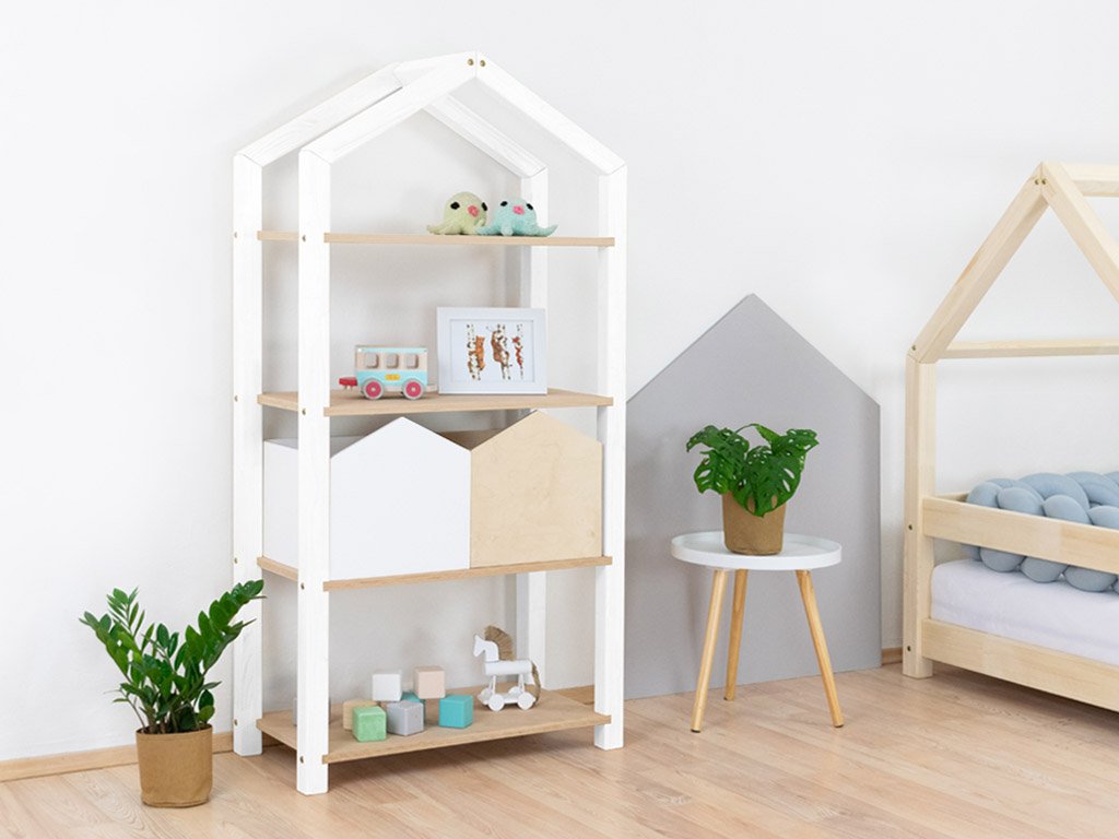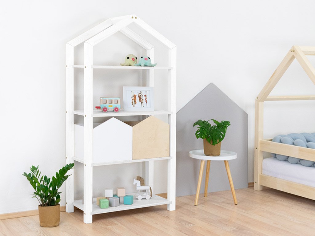 Das Regal TALLY dient als kinderfreundliche Aufbewahrungsmöglichkeit für Bücher, Spielzeug und all das, was im Kinderzimmer einen festen Platz benötigt. Das hausförmige Regal mit Dach ist 77cm Lang, 39cm tief und 152cm hoch. Es ist aus hochwertigem Massivholz handgefertigt. Wähle die Farbvariante, die am besten ins Kinderzimmer passt. Bei der Variante „Natur“ handelt es sich um unbehandeltes Holz. Alle anderen Varianten sind mit 100% natürlichen, ökologischen, antiallergenen Farben lackiert. Die Holzmaserung scheint noch durch die Farbe hindurch und gibt dem Regal einen natürlichen Charakter.