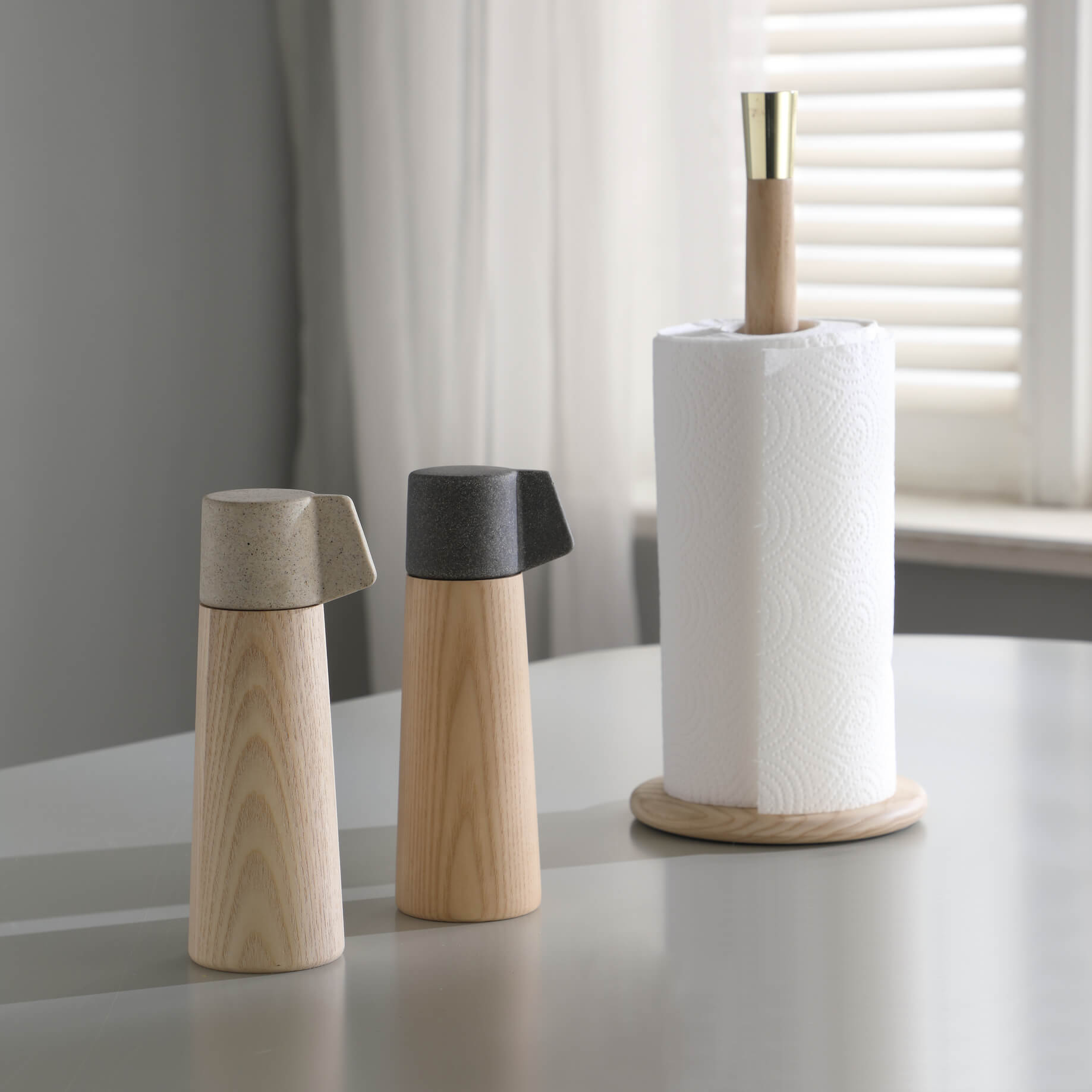 Glatte, stark reduzierte Eichenzylinder, kombiniert mit farbigem Oberteil ergeben die trendige Salz- und Pfeffermühle aus der RAFAEL Dining Kollektion. Das glatte Holz verströmt Natürlichkeit, die einfache Form Eleganz. Die Mühlen liegen sehr gut in der Hand und haben eine authentische Anmutung. Es gibt sie in zwei verschiedenen Ausführungen: in Schwarz mit Eiche und in Beige mit Eiche. An der Unterseite kannst du die Mahlstärke einstellen.