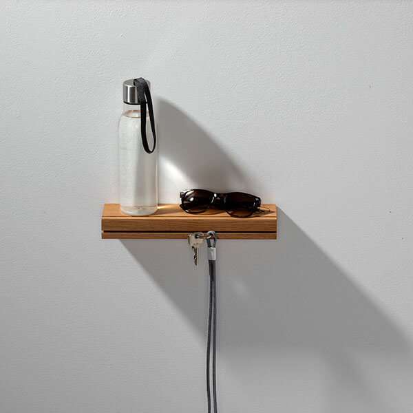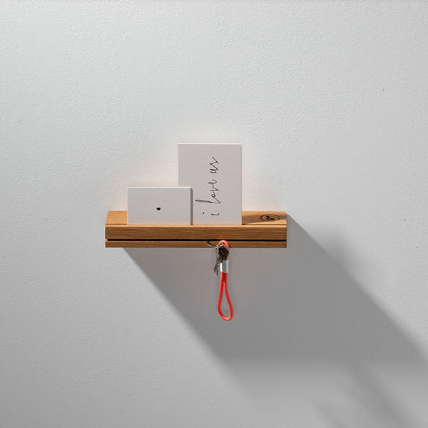 Schlüssel, Portemonnaie, Handy – das Wichtigste für den Gang aus dem Haus findet mit dem Schlüsselbrett EICHE 01 von weld & co seinen Platz. In den Front-Schlitz der kleinen Ablage können Schlüssel und Schlüsselringe gesteckt werden, in der Fräsung an der Oberseite des Schlüsselbretts halten Postkarten, wichtige Briefe, Tickets etc. Außerdem lassen sich mithilfe eines Briefklemmers in der Fräsung Notizen fixieren. Auch Sonnenbrille, Kaffeebecher und Wasserflasche für unterwegs und alle kleinen Gegenstände, die nicht zuhause vergessen werden sollen, können auf dem Schlüsselboard bereitliegen. So wird das Schlüsselbrett zum handlichen „Multifunktionswandregal“ für Eingangsbereich und Flur.