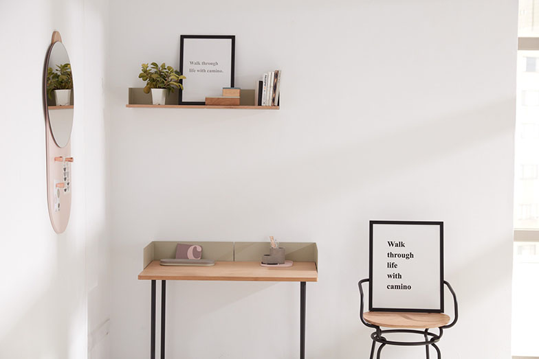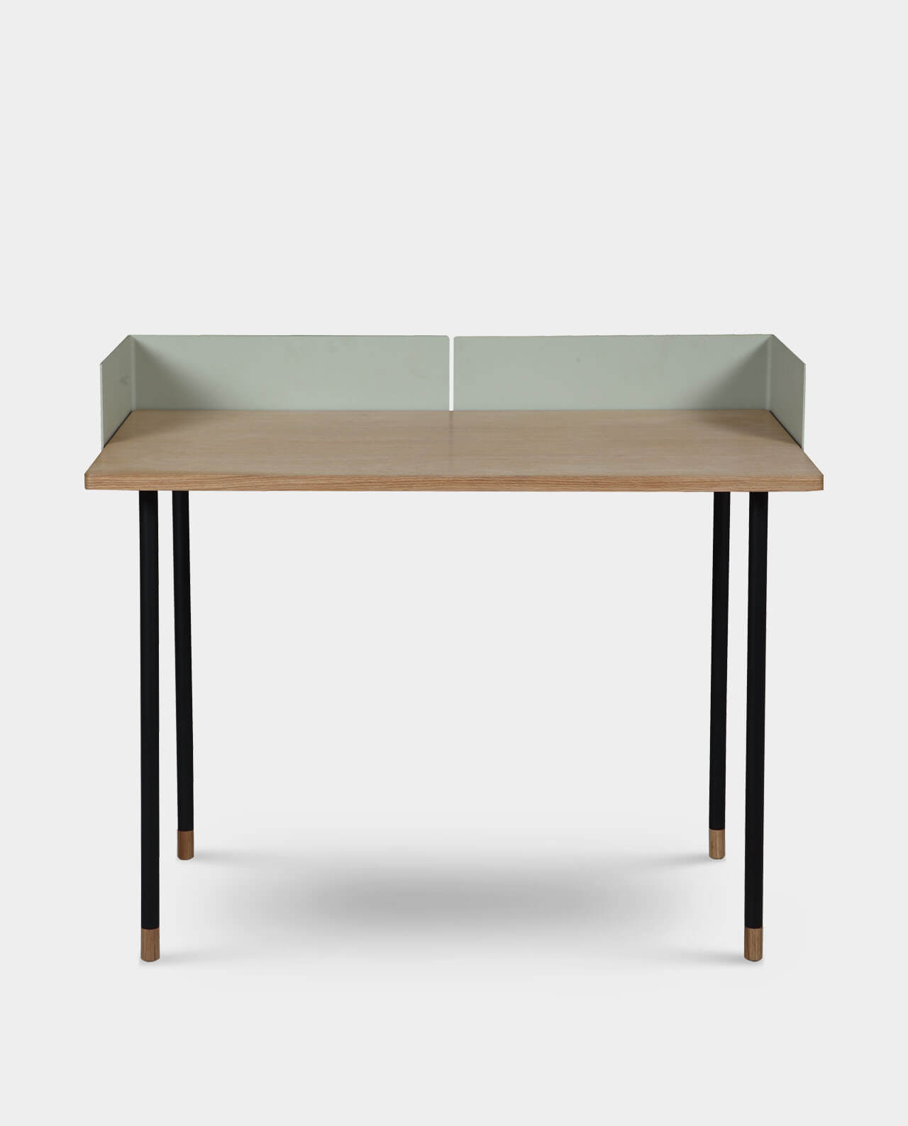 Der Schreibtisch BUENA mit einer Holzplatte aus Natureiche (MDF-Platte mit Massivholzfunier), pulverbeschichteten Beinen und mintgrünem Metallrahmen besticht durch sein minimalistisches Design und passt perfekt in jeden Raum. Die mintgrünen Metallseiten im Spaltdesign und die Sechskantschrauben unterstreichen den cleanen Charakter. BUENA spart Platz und bietet gleichzeitig genügend Schreibfläche zum Arbeiten und um alle wichtigen Dokumente im Blick zu behalten. Er ist ideal für das Arbeitszimmer, Wohnzimmer oder in einer kleinen Nische im Schlafzimmer und verleiht deinem Zuhause das gewisse Etwas.