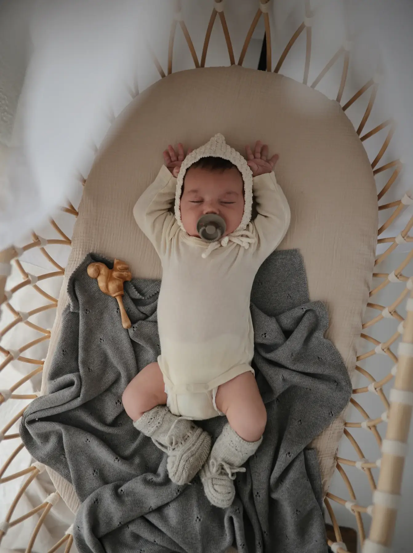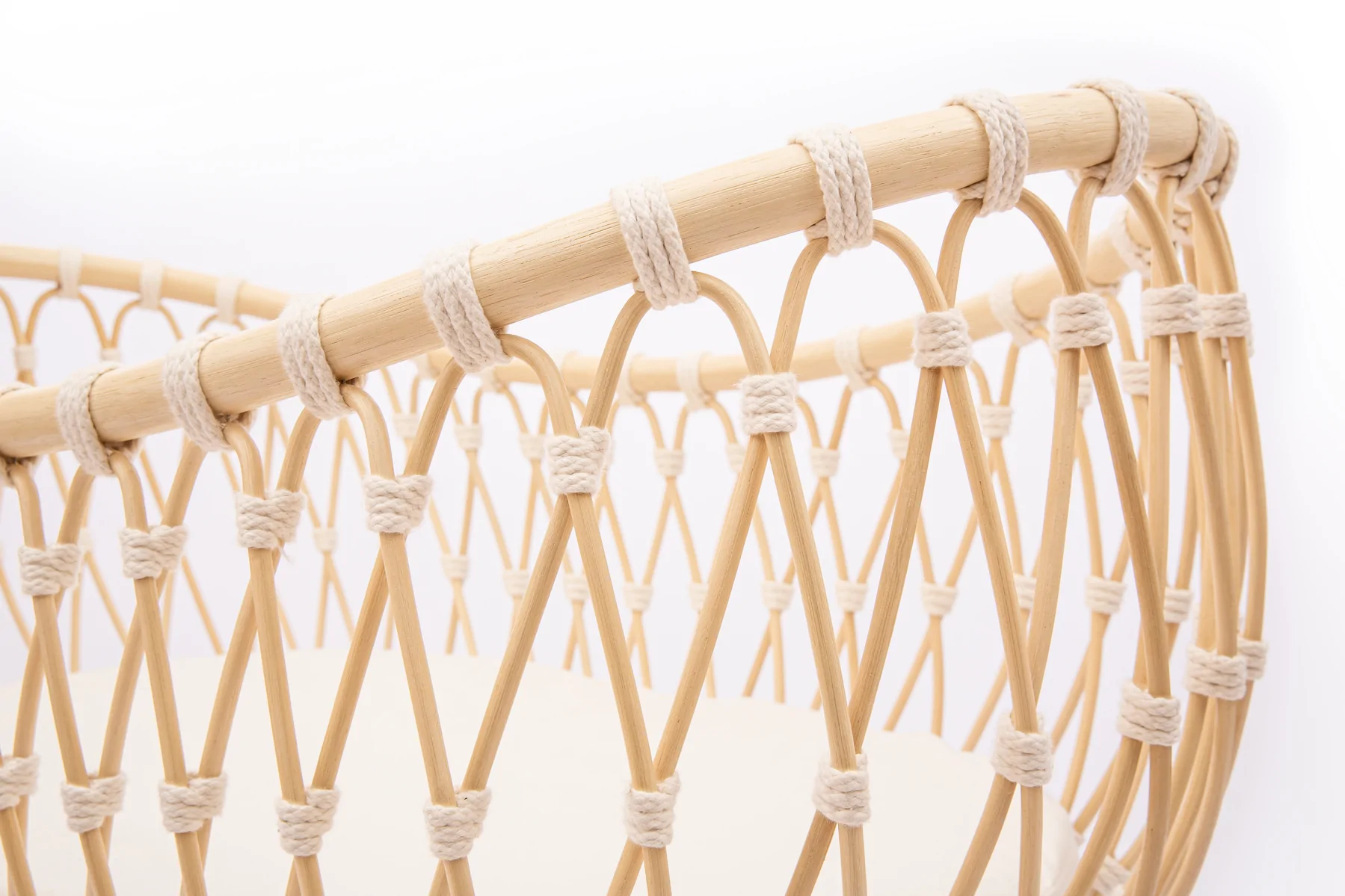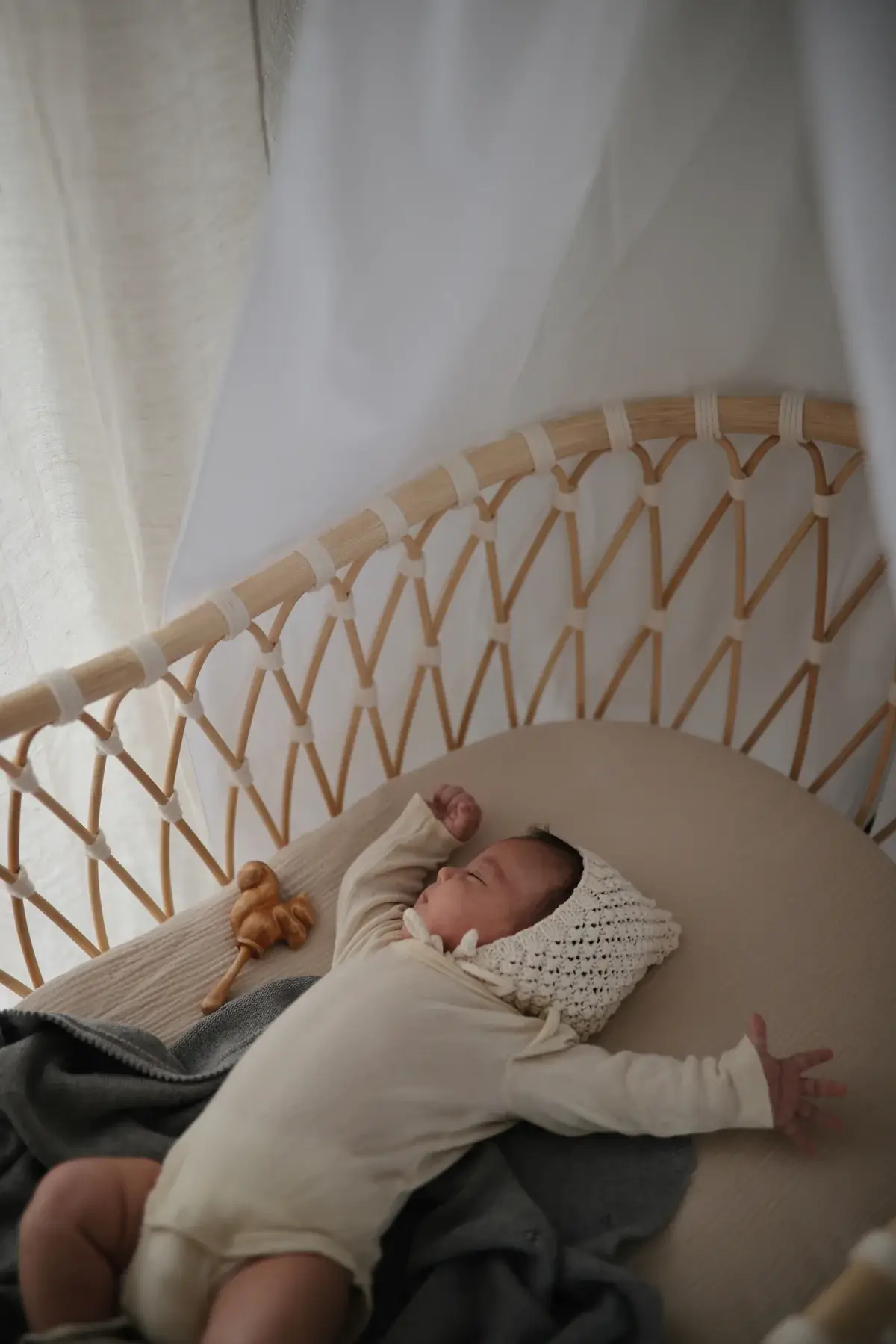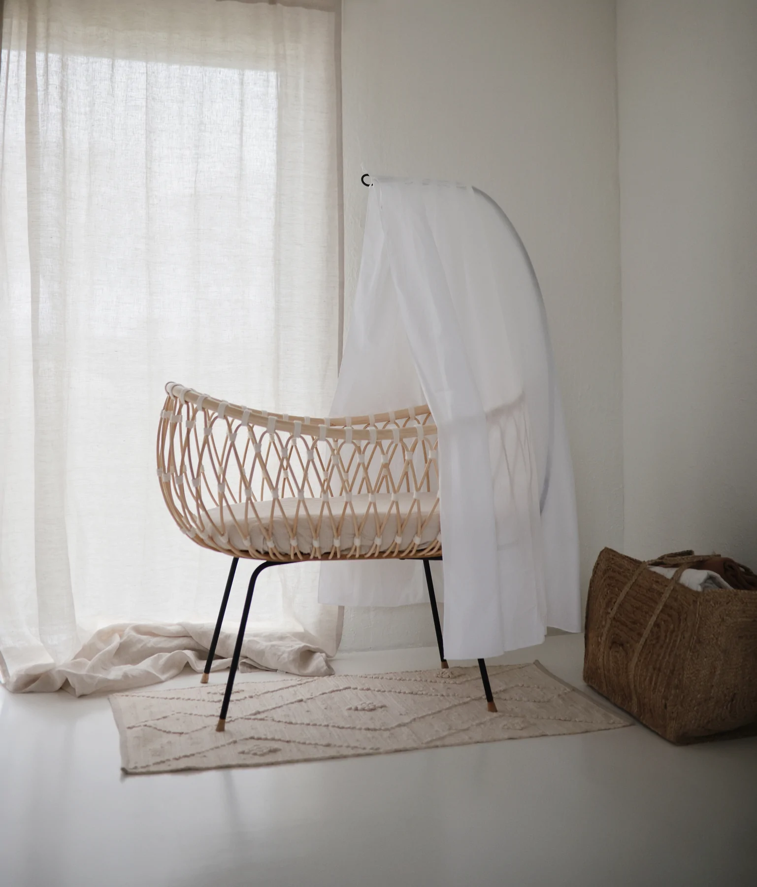 Stubenbett EMIL VEGAN wirkt auf dem filigranen Metallgestell sehr leicht – beinahe schwebend. Der fein geflochtene Korb aus Rattan ist an Design kaum zu übertreffen. Es verleiht dem Stubenbett zudem eine gewisse Transparenz. So hast du dein Baby stets im Blick und dein Baby kann bereits seine Umgebung aus dem Bettchen heraus erkunden. Feine Riemchen aus Baumwoll-Seilen umschließen die einzelnen Verbindungen des Rattan-Geflechts und verleihen ihm zusätzliche Festigkeit. Die warmen natürlichen Farben von Rattan und Leder verbinden sich dabei zu einem einzigartigen Muster. Kleine Füße aus Mangoholz sorgen für eine gleichmäßige und schonende Bodenauflage.