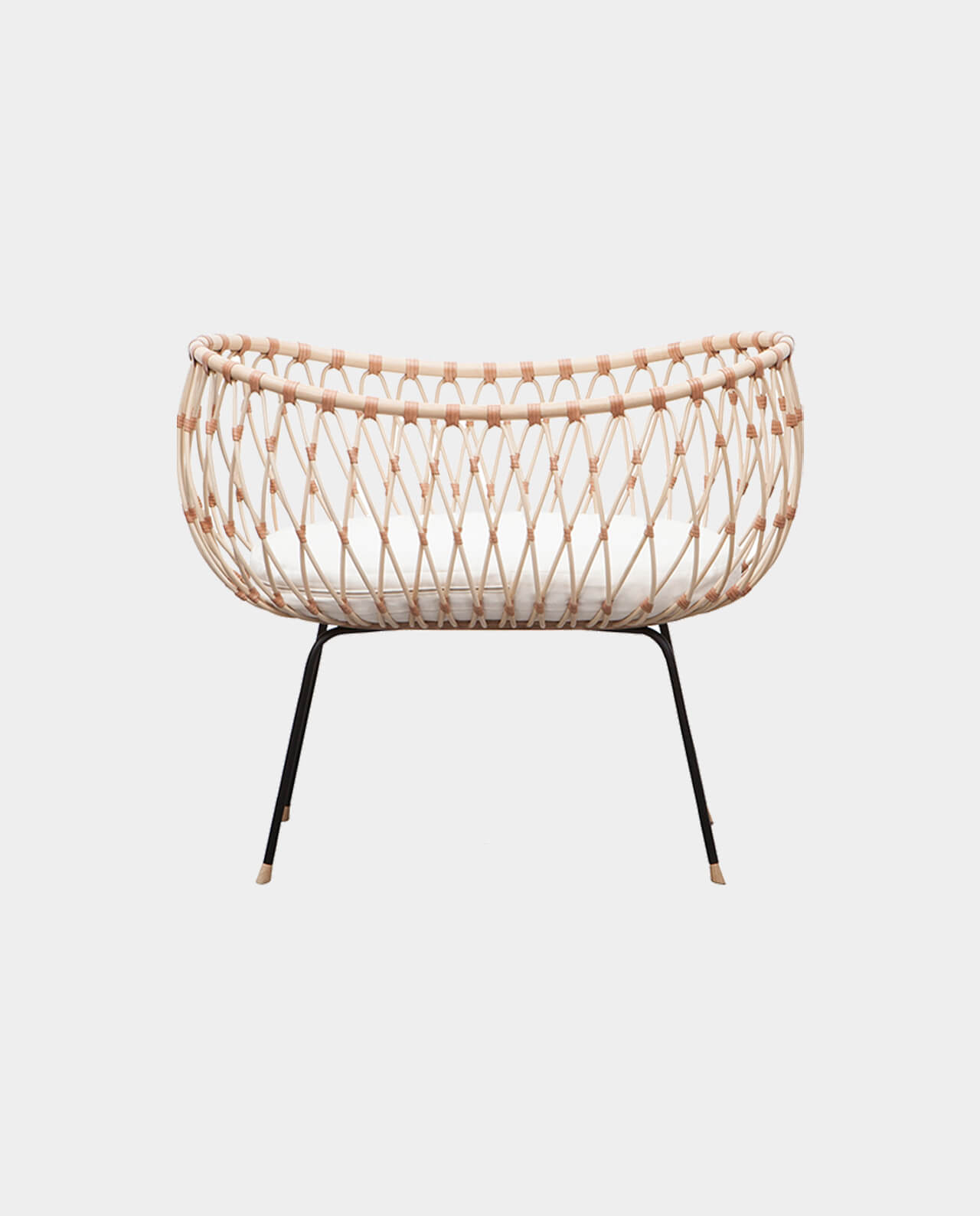 Stubenbett EMIL wirkt auf dem filigranen Metallgestell sehr leicht – beinahe schwebend. Der fein geflochtene Korb aus Rattan ist an Design kaum zu übertreffen. Es verleiht dem Stubenbett zudem eine gewisse Transparenz. So hast du dein Baby stets im Blick und dein Baby kann bereits seine Umgebung aus dem Bettchen heraus erkunden. Feine Riemchen aus pflanzlich gegerbtem Leder umschließen die einzelnen Verbindungen des Rattan-Geflechts und verleihen ihm zusätzliche Festigkeit. Die warmen natürlichen Farben von Rattan und Leder verbinden sich dabei zu einem einzigartigen Muster. Kleine Füße aus Mangoholz sorgen für eine gleichmäßige und schonende Bodenauflage.