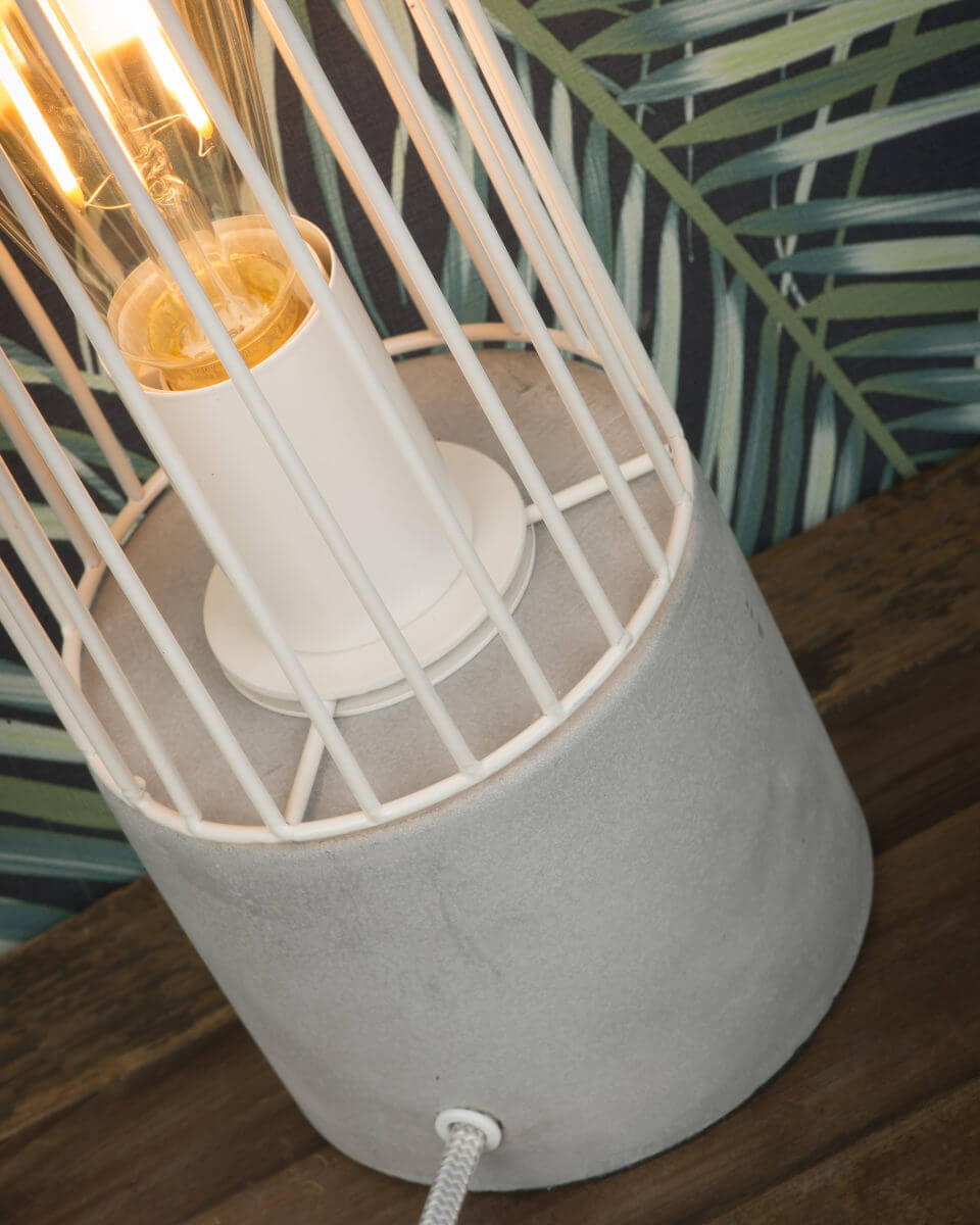 Die trendige Tischleuchte MEMPHIS ist ein schöner Blickfang aus stabilem Zement und Stahl. Für die Nutzung benötigst du ein Leuchtmittel für eine E27 Fassung mit max. 4o Watt. Das Leuchtmittel ist in der Lieferung nicht inklusive.