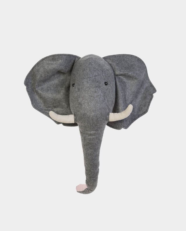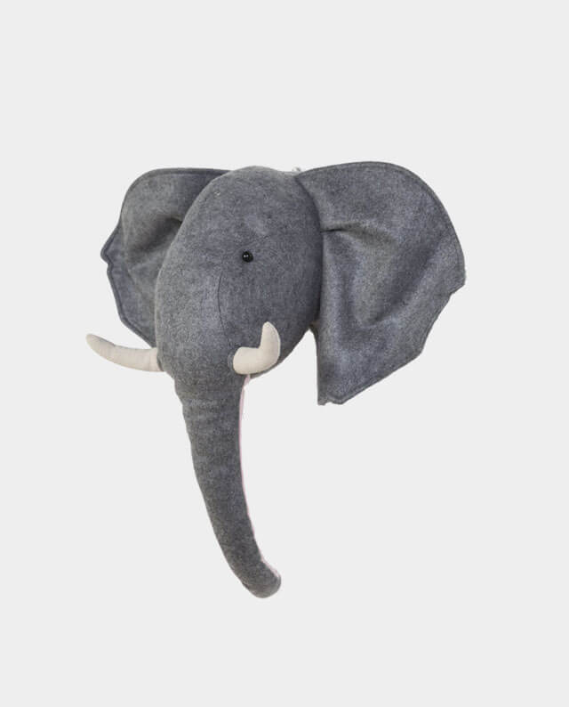 Dein Kind liebt Elefanten? Dann bring jetzt kleine Kinderaugen zum Strahlen mit der Wanddekoration ELEFANT. Dieser süße Elefantenkopf aus Filz lässt sich ganz einfach an der Wand des Baby- oder Kinderzimmers befestigen. ELEFANT hat die Maße 53 cm x 34 cm x 48 cm und ist damit in jedem Fall nicht zu übersehen mit seinem großen Rüssel (Innenseite ist Rosa) und den beiden beigen Stoßzähnen. Die Rückseite ist fest und daher hervorragend zum Aufhängen an der Wand geeignet. Diese moderne Wanddekoration ist ein richtiger Blickfang und lässt das Herz von manch einem Tierfreund höher schlagen.