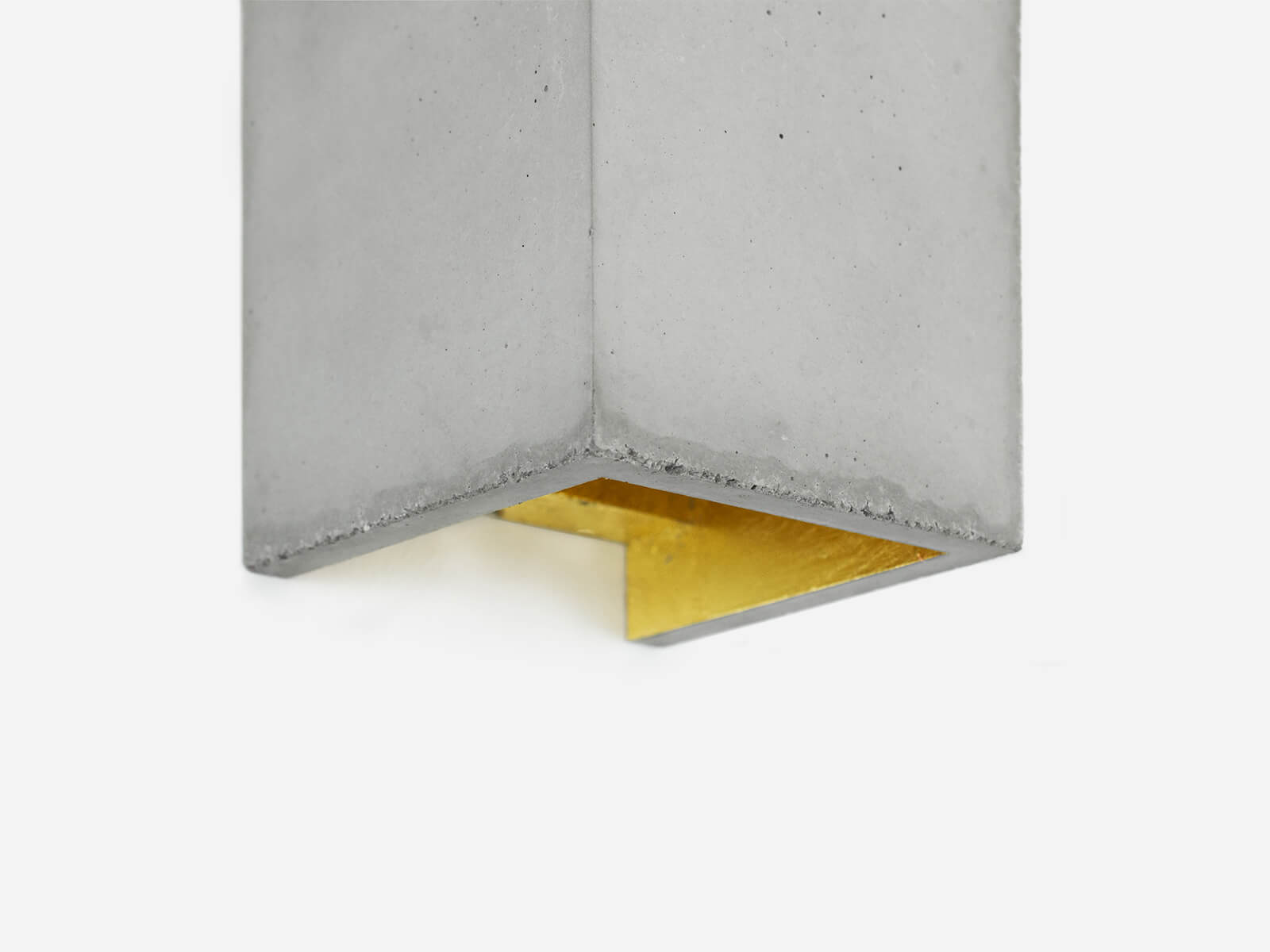Die rechteckige Wandlampe B8 wird aus hellgrauem Beton gegossen. Sie vereint edles Gold, Silber oder Kupfer mit rauem Beton zu einer zeitlosen und stilvollen Designerleuchte. Durch die veredelte Innenseite gibt sie ein warmes Licht ab.