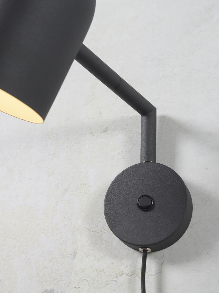 Die moderne Wandlampe MARSEILLE vereint ein angesagtes Design und Funktionalität. Du kannst den Kopf der Lampe nach links und rechts drehen. Somit eignet sich die moderne Wandleuchte ideal als Leselampe am Bett. Der Ein-/Ausschalter befindet sich an der Basis der Leuchte. Die Leuchte ist mit einem 200cm langen, schwarzen Textilkabel ausgestattet. Ein Leuchtmittel (E27, max. 40W) ist nicht inklusive.
