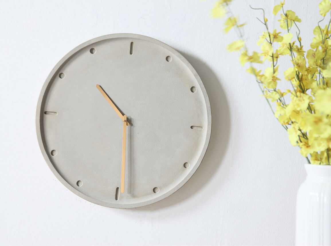 Zeit und Raum neu definieren. Die Designuhr CLARA aus Beton mit einem Kupferzeiger komplementiert. CLARA konzentriert sich auf das Wesentliche: die Zeit. Das klare Design spricht für sich und beweist, dass die Einfachheit das Besondere ausmacht. Zwei Positionslöcher für das Befestigen an der Wand sind vorhanden. Die Wanduhr hat einen Durchmesser von 44cm und eine Tiefe von 4cm. Sie ist absolut lautlos.
